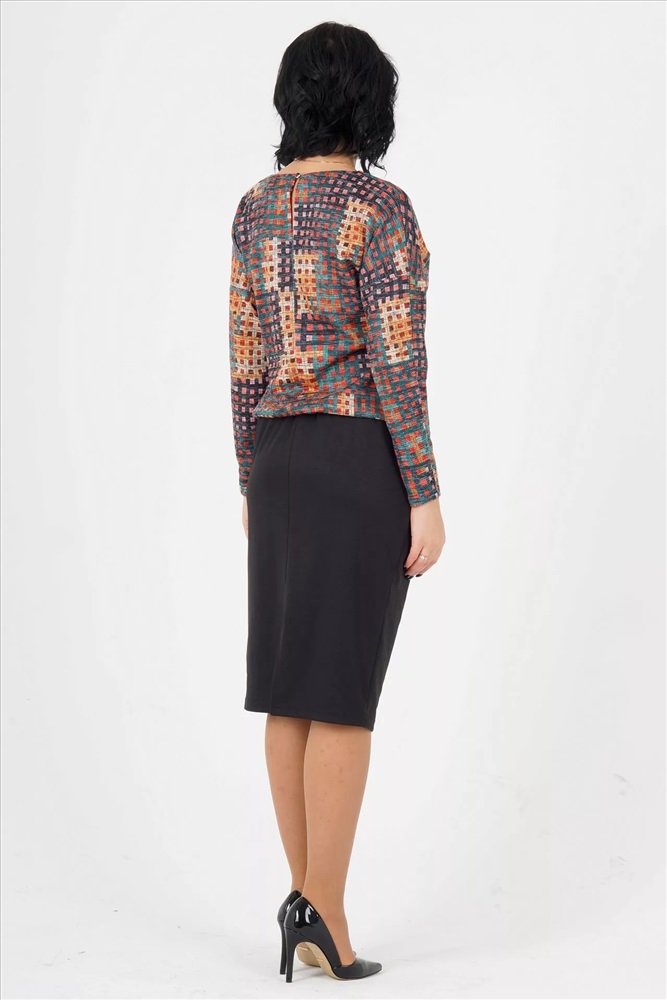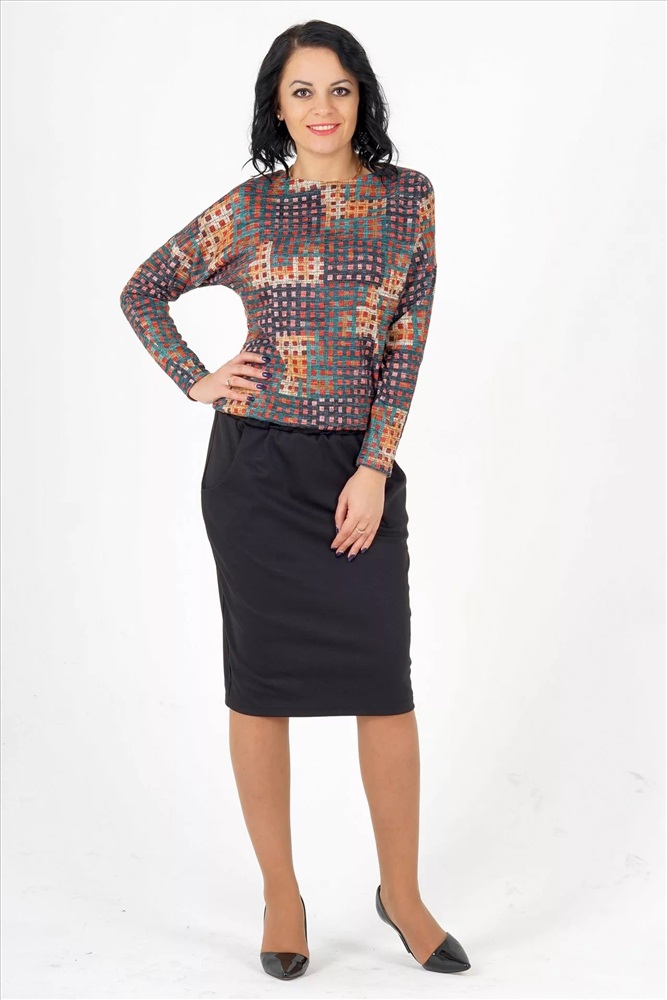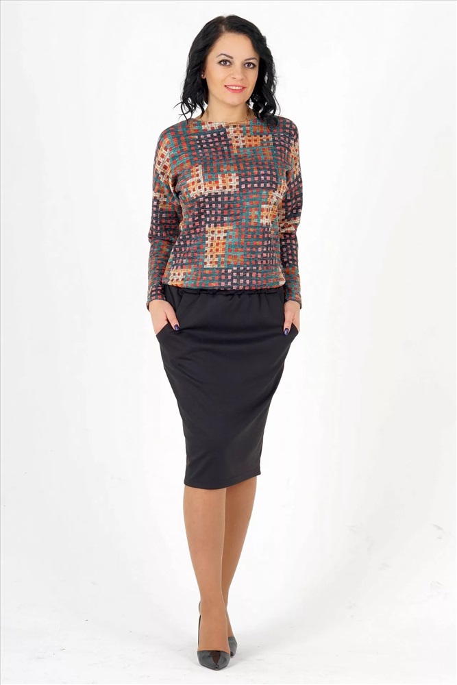 Материал: Трикотаж плотный Тип: Повседневная Сезон: Осень-Зима Цвет модели: Цветная геометрия, чёрный Страна производства: Россия Платье свободного силуэта. Выполнено верх из трикотажного полотна меланж, низ из плотного трикотажа. Круглый вырез горловины. Цельнокроеный рукав 65 см. Пояс на широкой резине. С карманами. Застёжка пуговица по спинке. Без подклада. ДИ в 42-46 р 115 см, в 48-50 р 119 см, в 52-54 р 124 см. Рост модели 164 см. , 42 размера Комментарии к товару