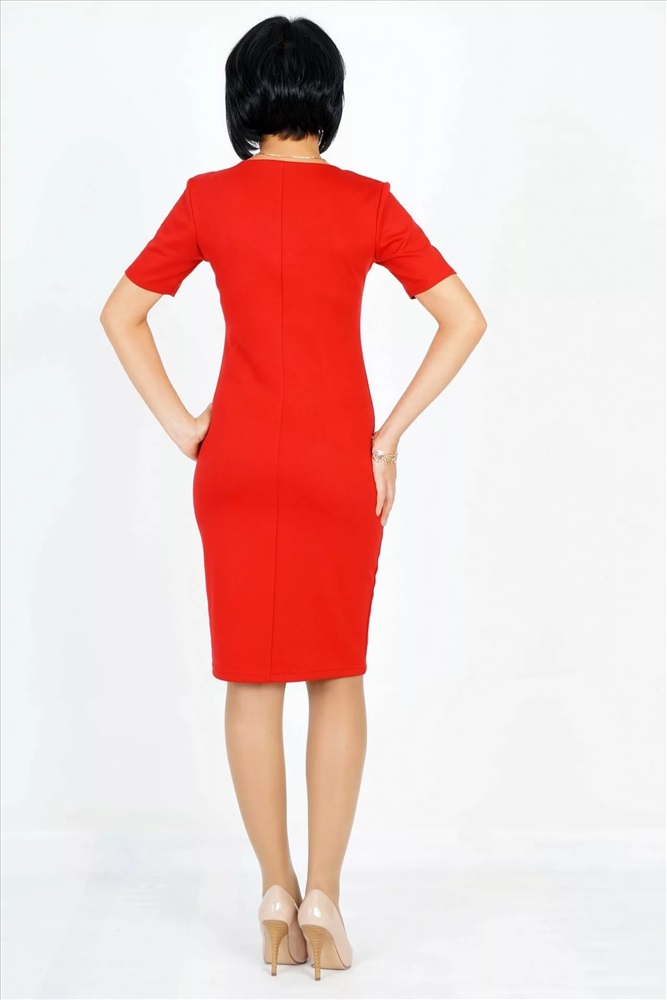 Платье прилегающего силуэта из плотного трикотажного полотна.