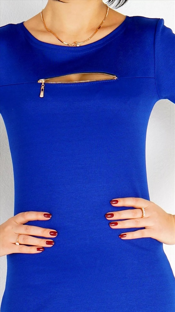Круглый вырез горловины. Лиф декорирован молнией под золото.