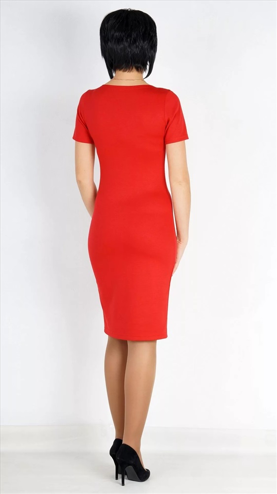 Платье прилегающего силуэта выполнено из плотного трикотажного полотна.