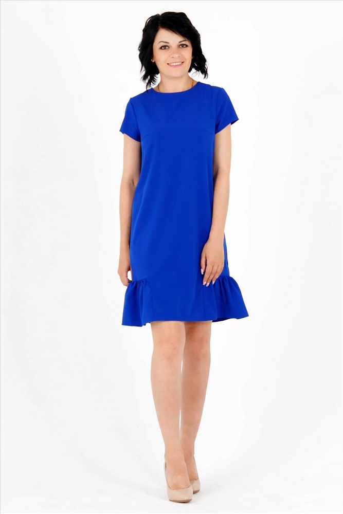 Материал: Плательная ткань Тип: Повседневная Сезон: Весна-Лето Цвет модели: Синий электрик Страна производства: Россия Платье свободного силуэта из плательной эластичной ткани. Круглый вырез горловины. Рукав короткий 13 см. Без подклада. Застёжка потайная молния по спинке. ДИ в 42-44 р. 89 см, в 46-48 р 93 см, в 50-54 р 98 см. Рост модели 164 см. , 42 размера Комментарии к товару