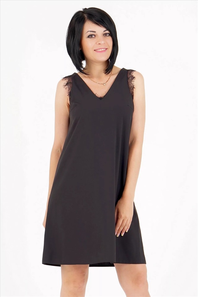 Материал: Плательная ткань Тип: Повседневная Сезон: Весна-Лето Цвет модели: Черный Страна производства: Россия Свободное платье А-силуэта. Выполнено из эластичной плательной ткани. Декорирована кружевом. Без рукавов. Без застёжки. Без подклада. ДИ в 42-44 р 89 см, в 46-48 р 94 см, в 50-52 р 91 см, в 54 р 98 см. Рост модели 164 см. , 42 размера Комментарии к товару