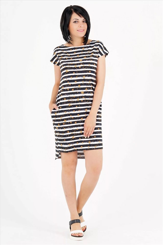 Платье из хлопкового эластичного трикотажного полотна свободного силуэта.