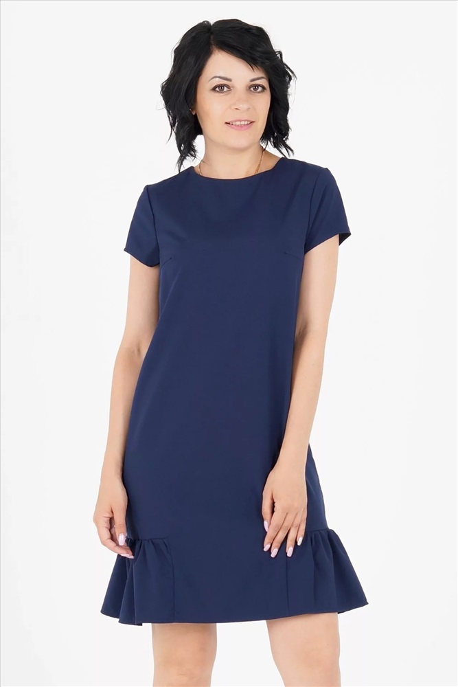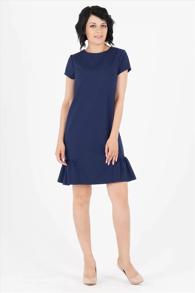 Материал: Плательная ткань Тип: Повседневная Сезон: Весна-Лето Цвет модели: Тёмно-синий Страна производства: Россия Платье свободного силуэта из плательной эластичной ткани. Круглый вырез горловины. Рукав короткий 13 см. Без подклада. Застёжка потайная молния по спинке. ДИ в 42-44 р. 89 см, в 46-48 р 93 см, в 50-54 р 98 см. Рост модели 164 см. , 42 размера Комментарии к товару