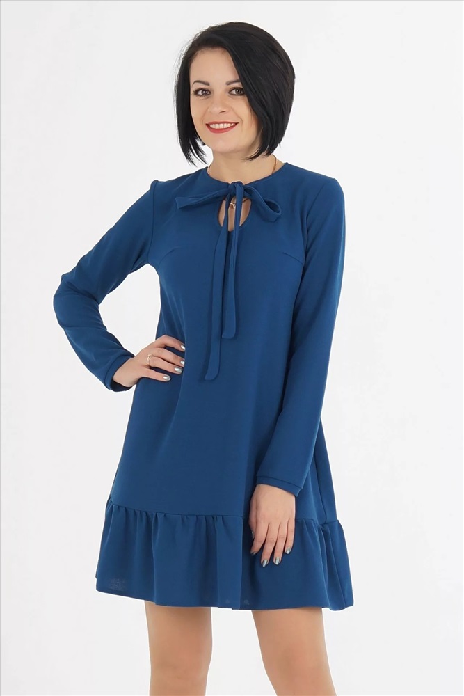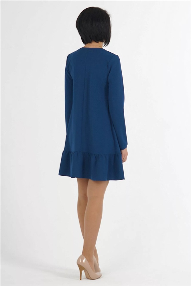 Платье свободного силуэта с воланом по низу.