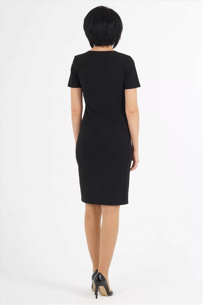 Платье прилегающего силуэта.