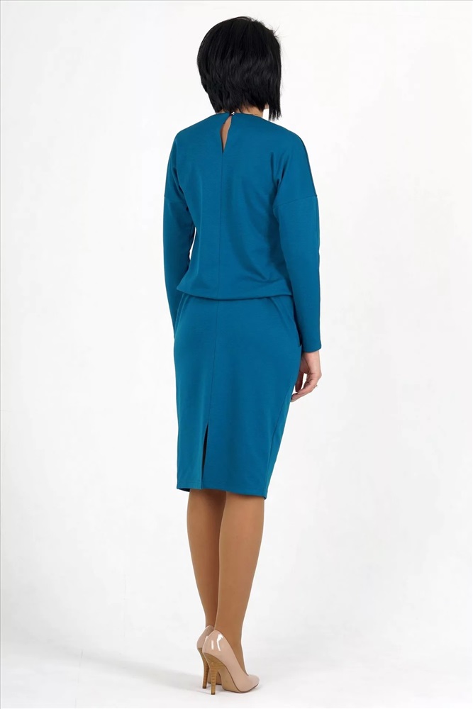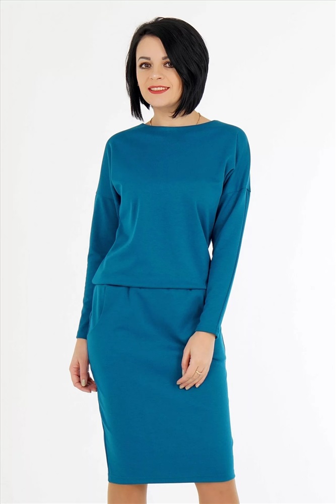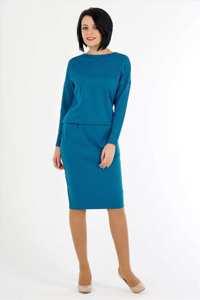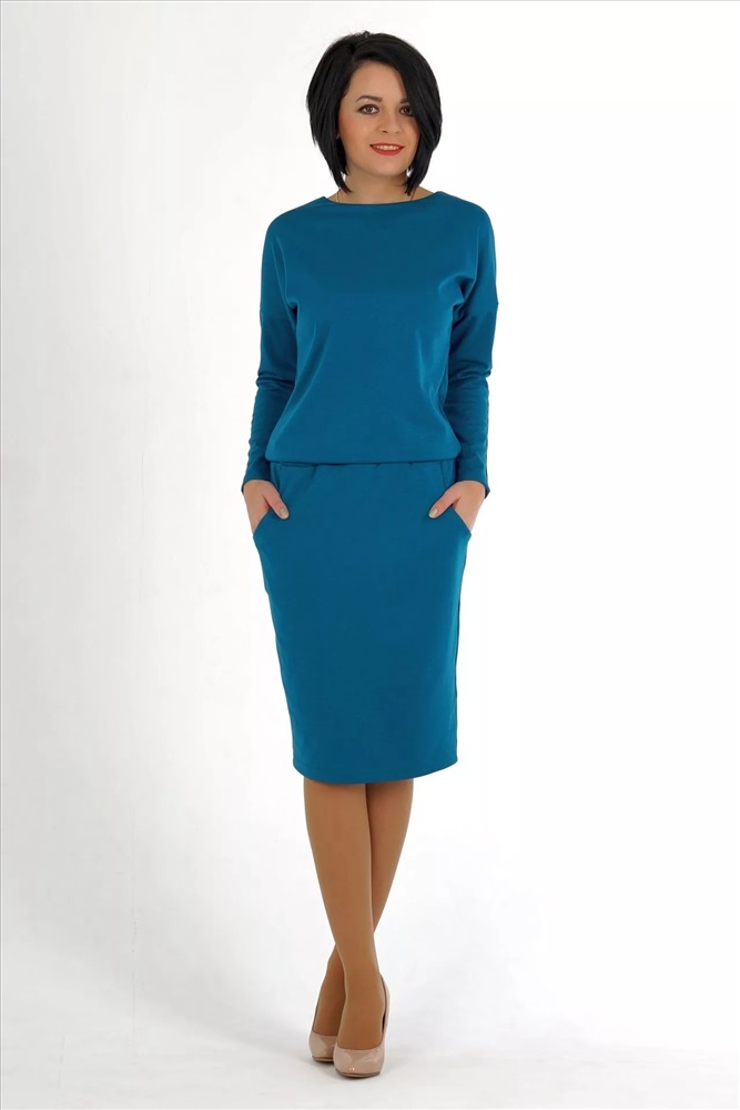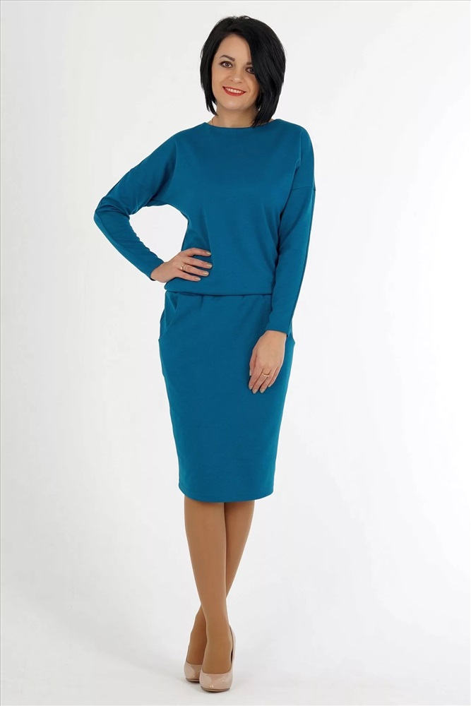 Материал: Трикотаж плотный Тип: Повседневная Сезон: Осень-Зима Цвет модели: Бирюзовый Страна производства: Россия Платье свободного силуэта. Выполнено из плотного трикотажа. Круглый вырез горловины. Цельнокроеный рукав 65 см. Пояс на широкой резине. С карманами. Застёжка пуговица по спинке. Без подклада. ДИ в 42-46 р 115 см, в 48-50 р 119 см, в 52-54 р 124 см. Рост модели 164 см. , 42 размера Комментарии к товару