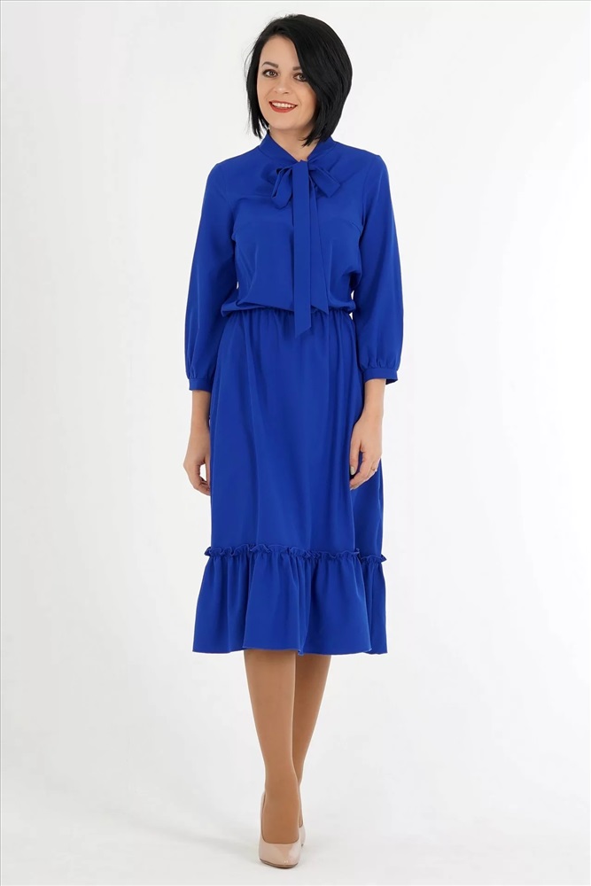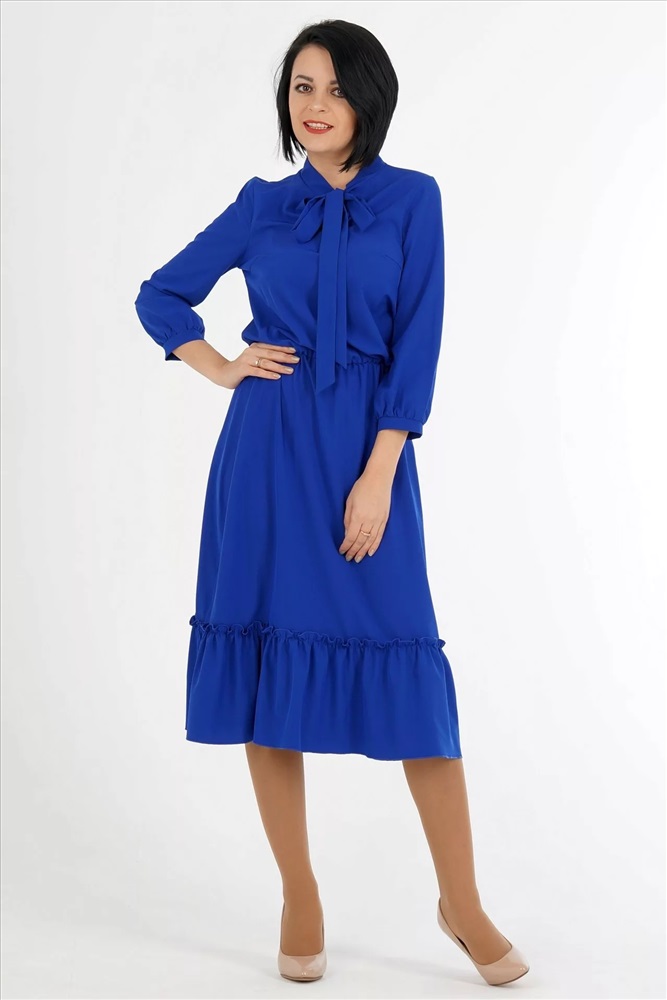 Материал: Плательная ткань Тип: Повседневная Сезон: Осень-Зима Цвет модели: Синий электрик Страна производства: Россия Платье свободного силуэта. Выполнено из эластичной плательной ткани. Воротник бант. Рукава 48 см. на манжетах. Резинка по талии. Без подклада. Без застёжки. ДИ в 42-44 р 116 см, в 46-48 р 117 см, 50-54 р 119 см. Рост модели 164 см. , 42 размера Комментарии к товару