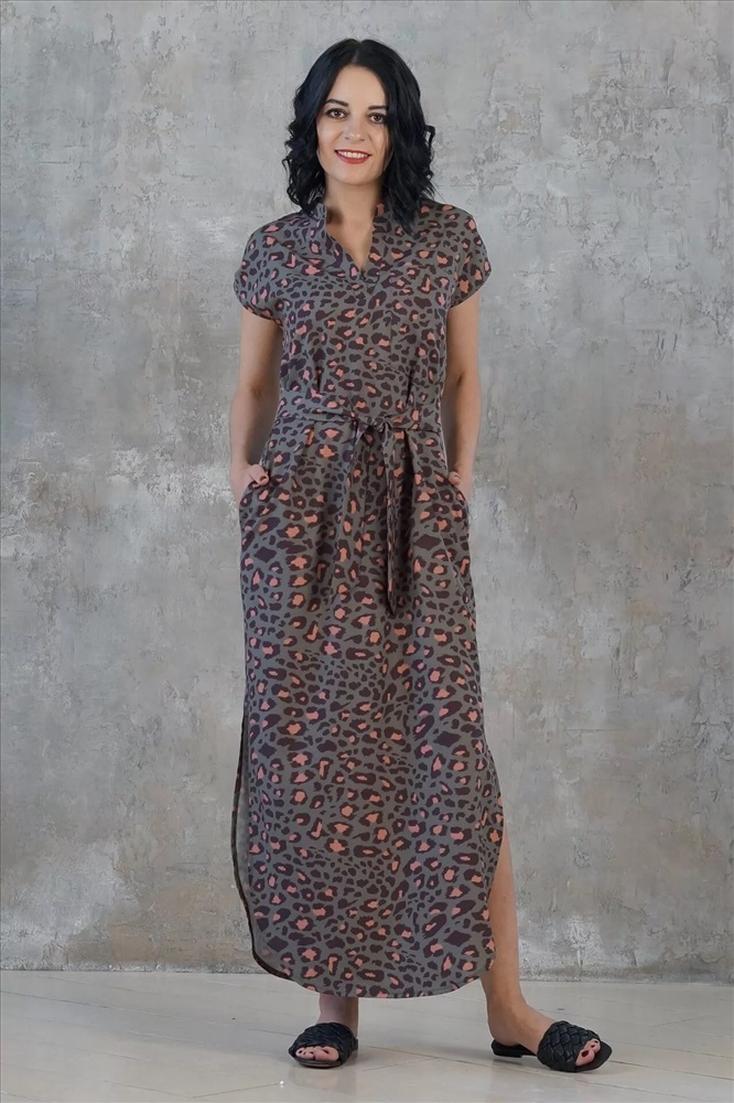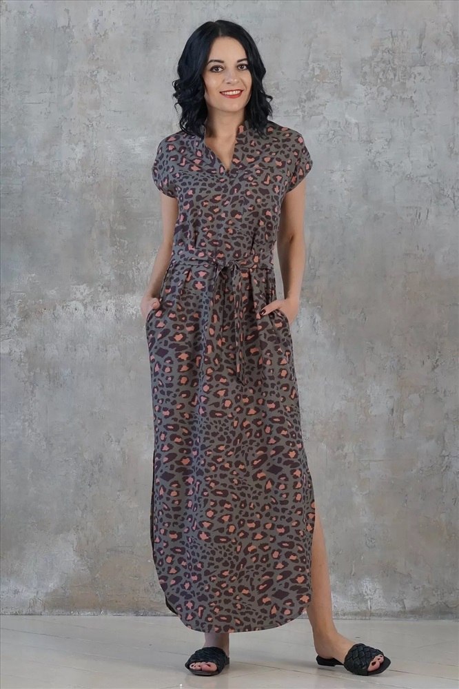 Материал: Плательная ткань Тип: Повседневная Сезон: Осень-Зима Цвет модели: Хаки Страна производства: Россия Длинное платье-рубашка. Выполнено из эластичной плательной ткани. Расцветка хищный принт на хаки. V-образный вырез горловины. Накладной карман по полке. Рукава цельнокроеные, длина от плеча в 42-44 р 18 см,в 46-48 р 19 см, в 50-54 р 20 см. Низ с разрезами. Без застёжки. Без подклада. ДИ в 42-44 р 130 см, в 46-48 р 131 см, в 50-54 р 133 см. Пояс в комплекте. Рост модели 164 см. , 42 размера Комментарии к товару