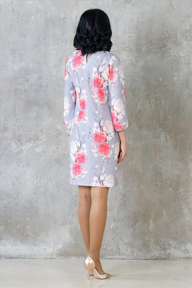 Расцветка яркие цветы на сером. Вырез горловины лодочка.