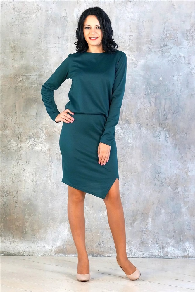 Низ платья ассиметричный.