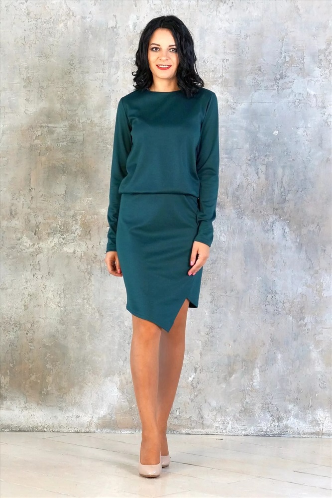 Расцветка тёмно-зелёный. Круглый вырез горловины.
