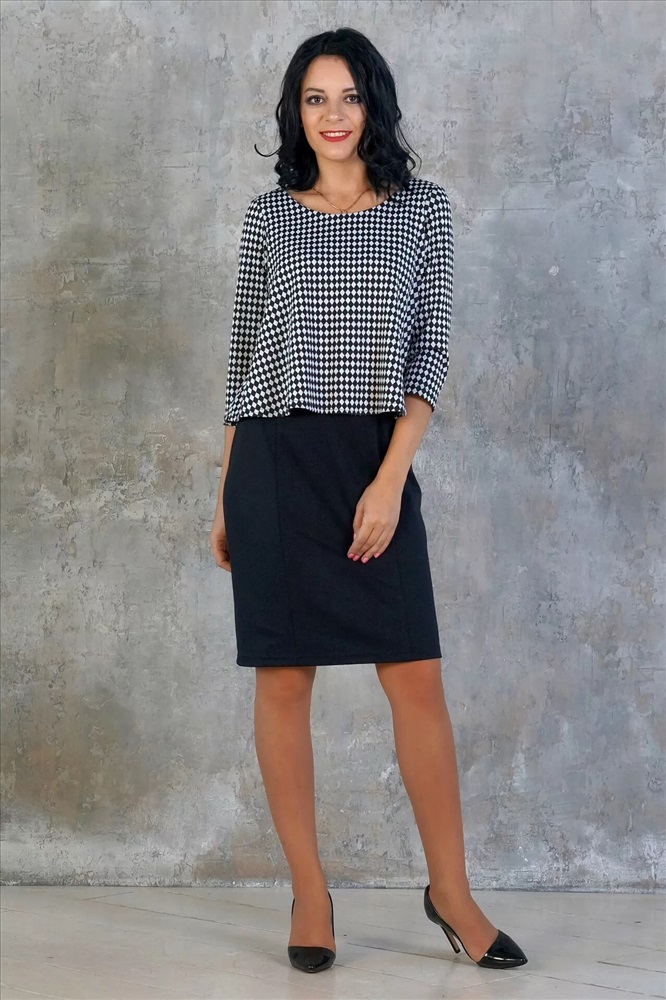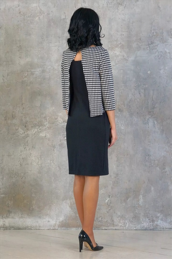 Материал: Трикотаж плотный Тип: Повседневная Сезон: Осень-Зима Цвет модели: Чёрный, чёрно-белый ромб Страна производства: Россия Платье из плотного трикотажного полотна. Прилегающего силуэта. С имитацией двойки. Расцветка чёрно-белый ромб. Вырез круглый. Рукава длинные 42 см. Без подклада. Застёжка пуговица. С разрезом. ДИ в 42-44 р. Платье 95 см., накидка 49 см., в 46-48 р. Платье 96 см, накидка 50 см, в 50-52 р платье 97 см, накидка 51 см, в 54 р платье 103 см, накидка 51 см. Рост модели 164 см., размер изделия 42. Комментарии к товару