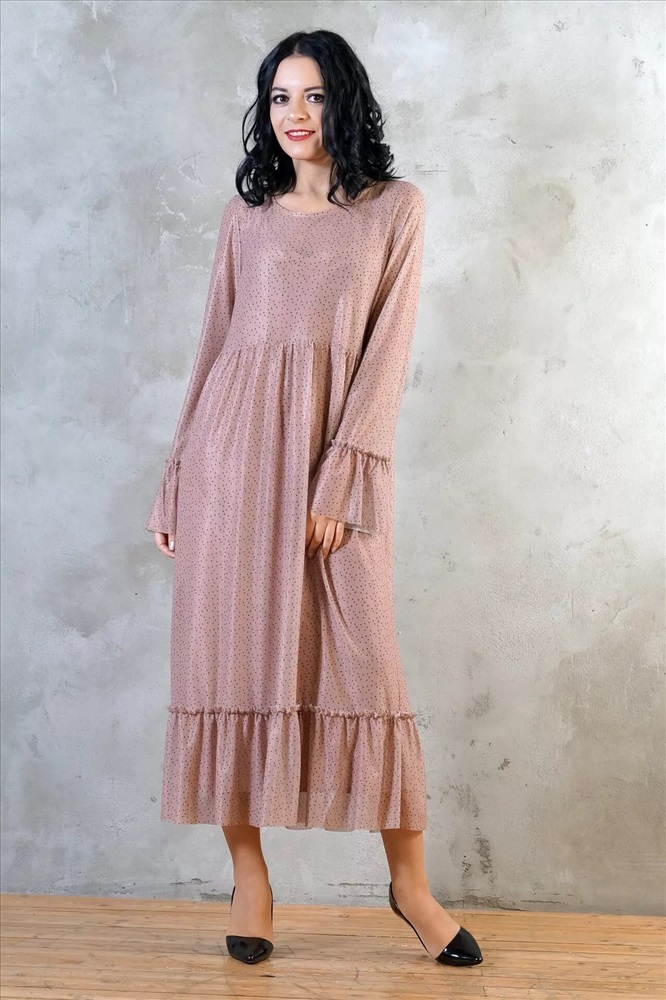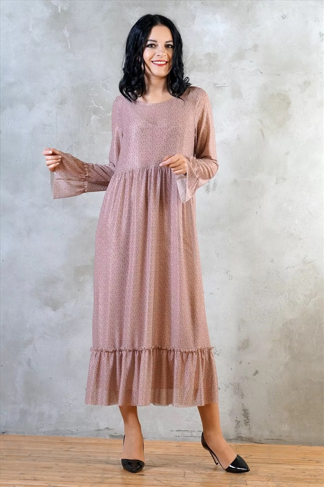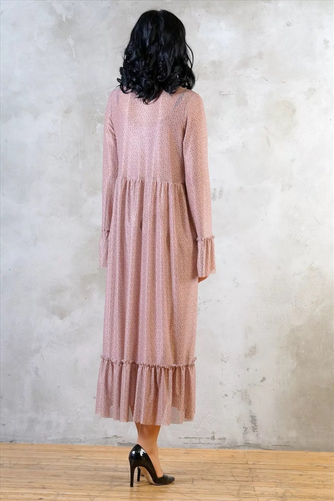 Вырез горловины круглый. Рукава длинные 63 см. Подклад не пришит к платью.