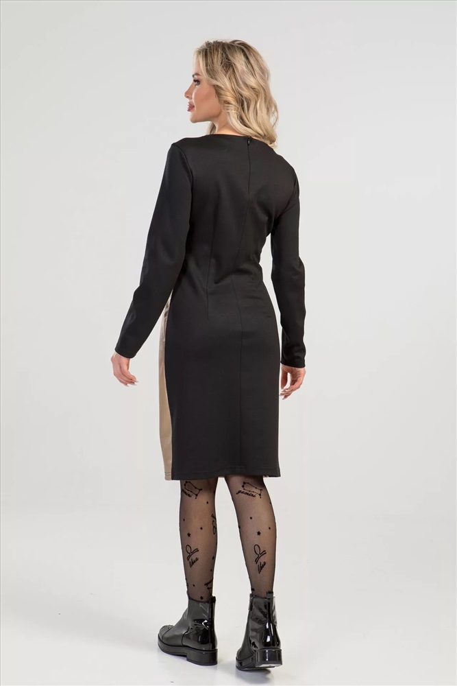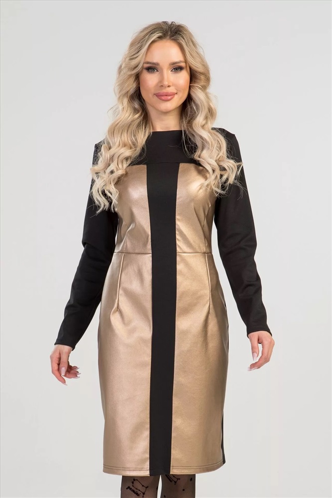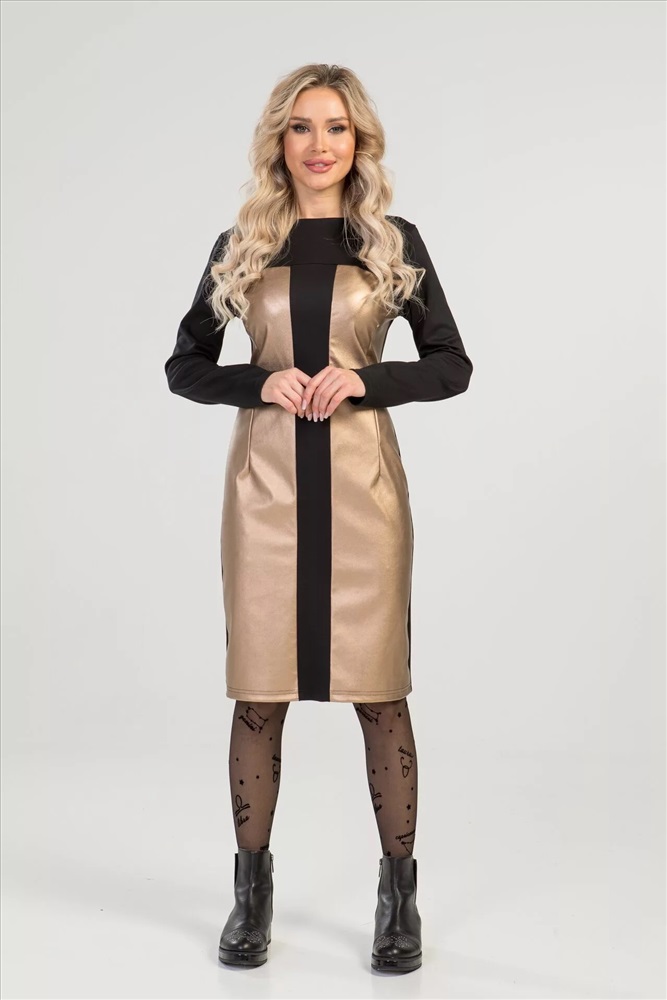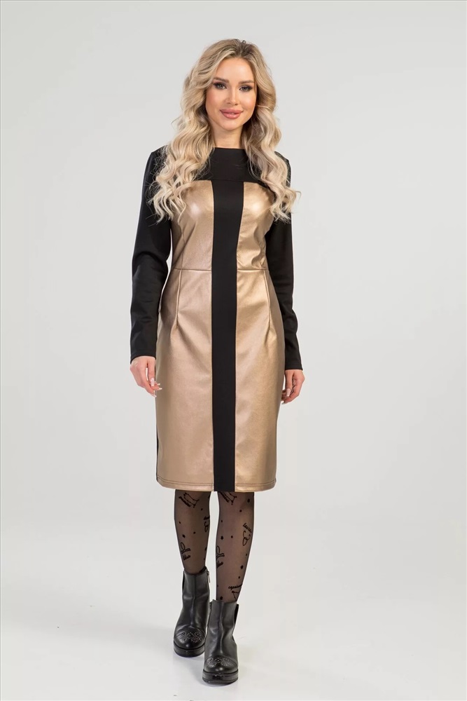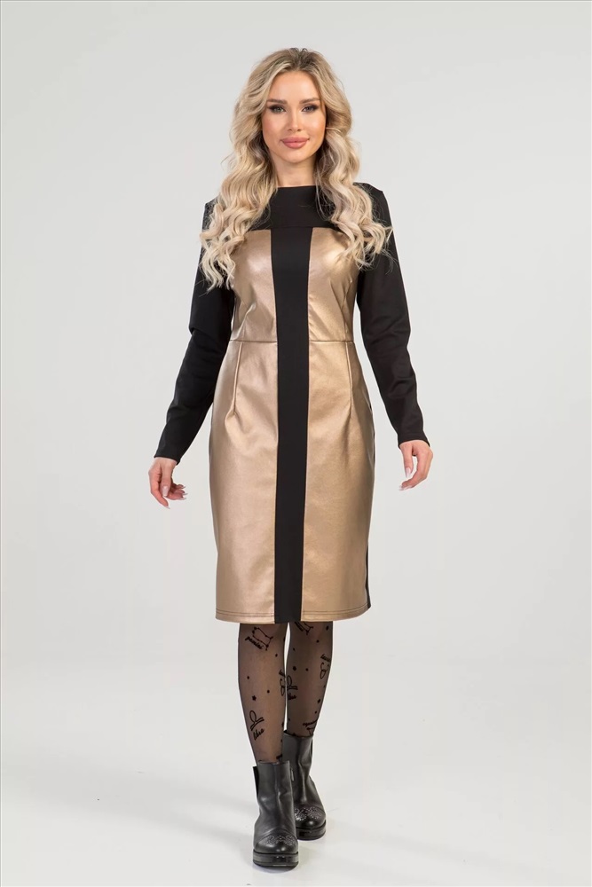 Выполнено из плотного трикотажного полотна с контрастной вставкой из эко кожи.