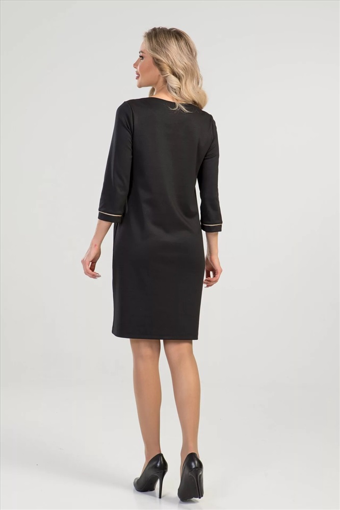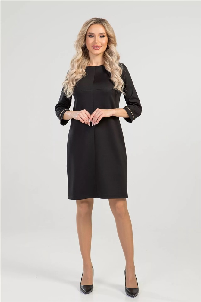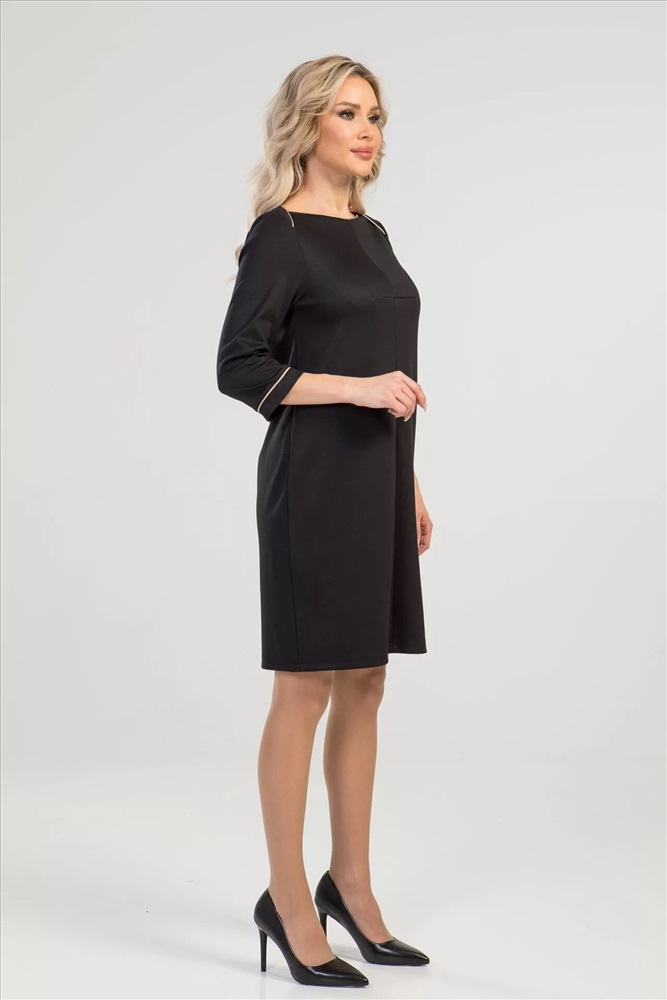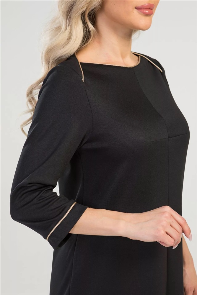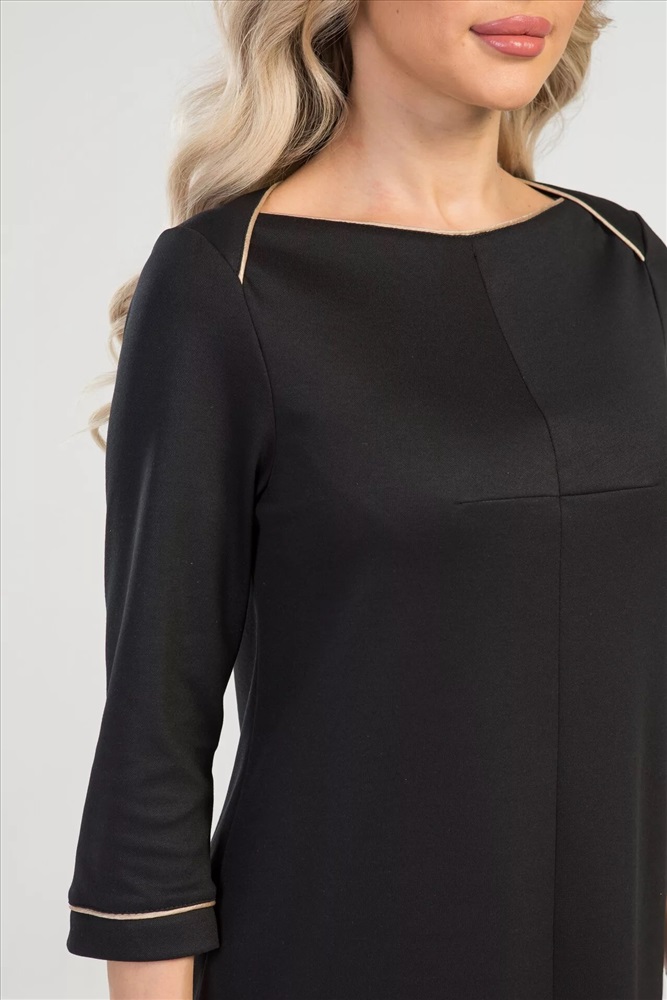 Расцветка чёрный. Вырез горловины "лодочка". Декорировано кантом.