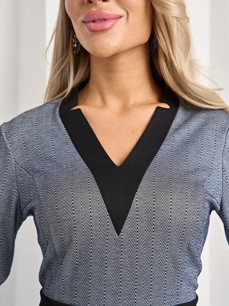 V-образный вырез горловины. Длинные втачные рукава. Платье отрезное по линии талии. Спинка изделия со средним швом. Комментарии к товару