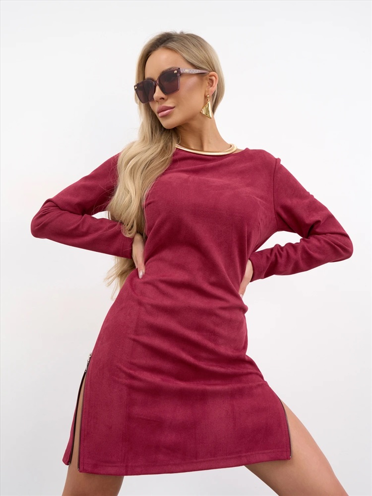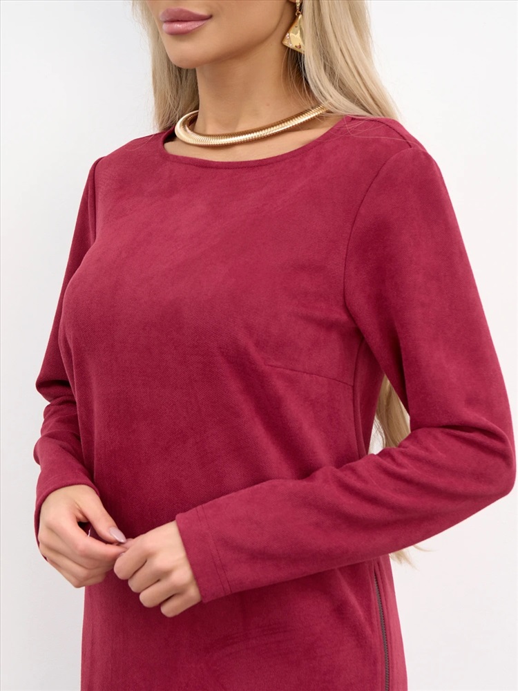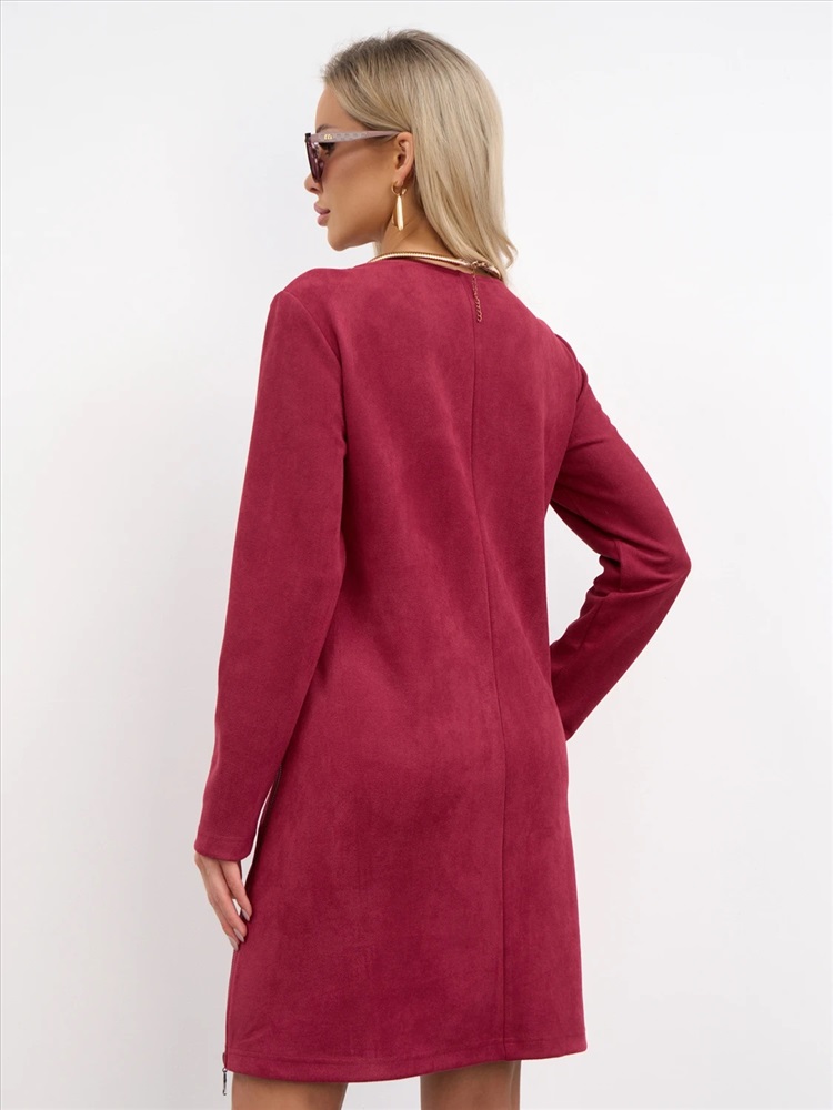 Платье А-силуэта с вырезом горловины лодочка из нежнейшего вельвета. Длинный втачной рукав. Спинка со средним швом. В боковых швах - разрез на молнии. Комментарии к товару