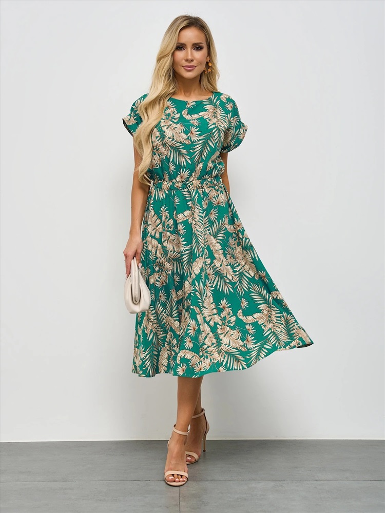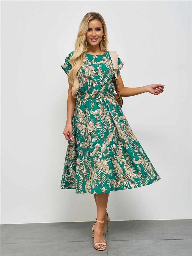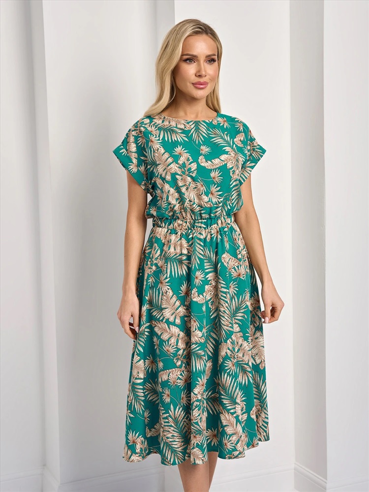Свободное платье с отрезным поясом на широкой резине.