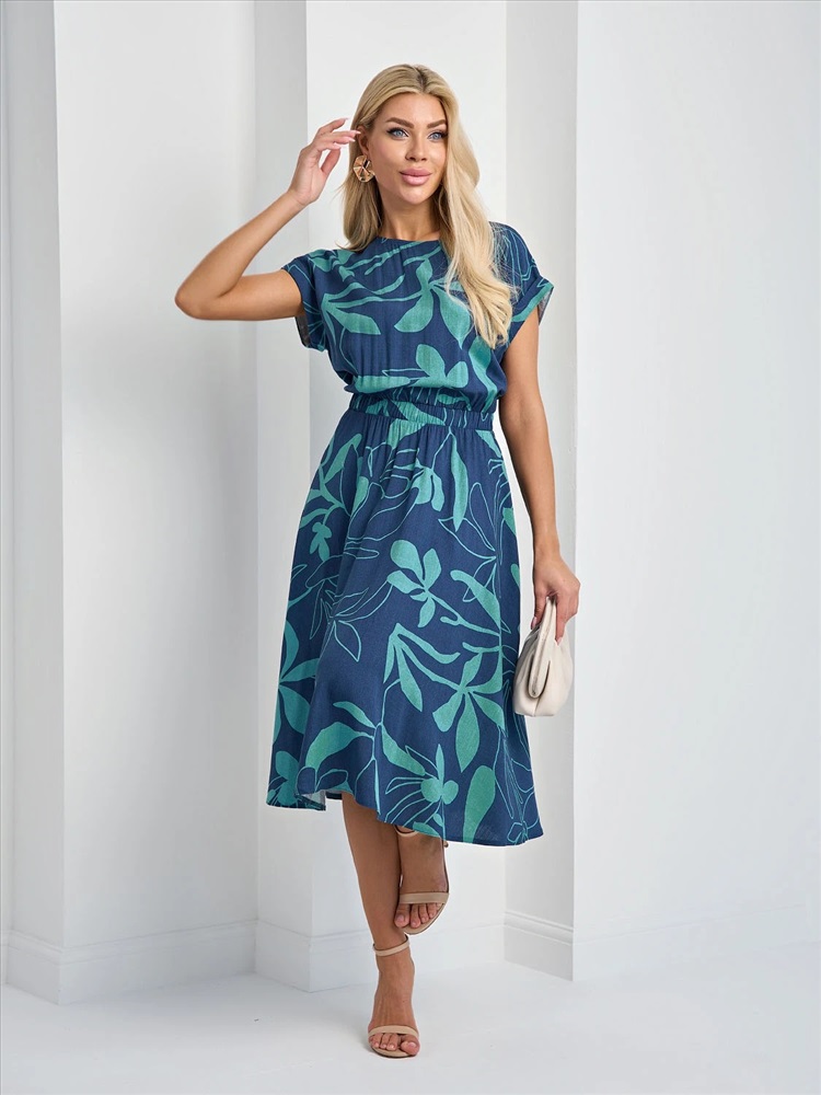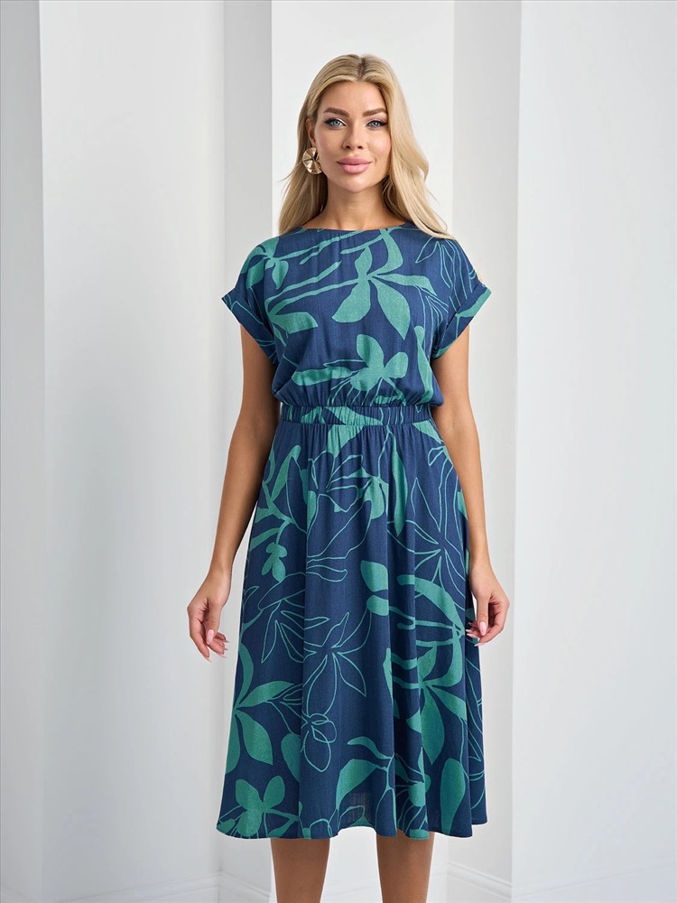 Свободное платье с отрезным поясом на широкой резине.