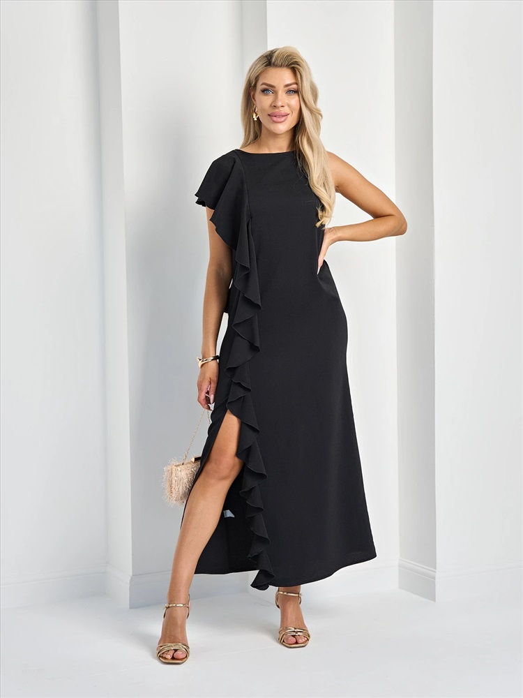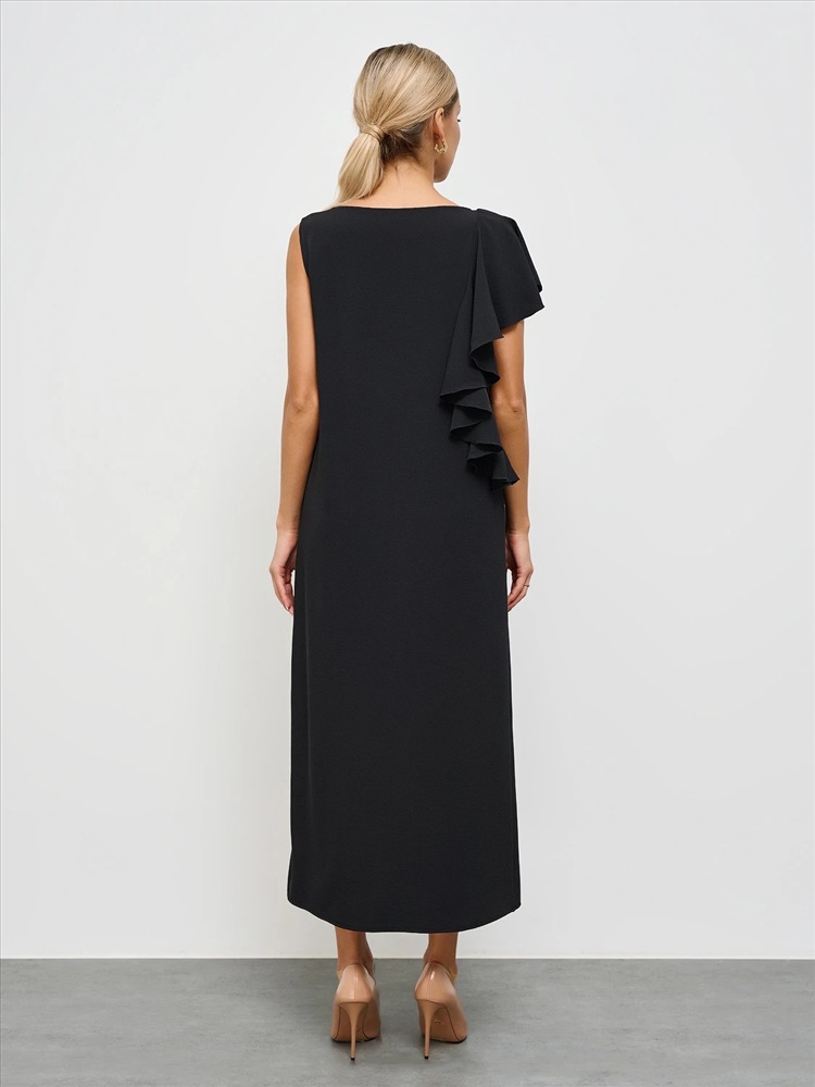 Перед и спинка с одной стороны изделия декорированы пришивным воланом, который мягко ложится на плечо и имитирует рукав. Комментарии к товару