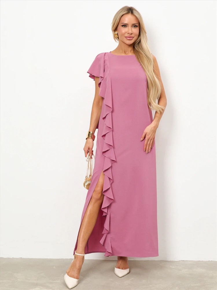 Перед и спинка с одной стороны изделия декорированы пришивным воланом, который мягко ложится на плечо и имитирует рукав. Комментарии к товару