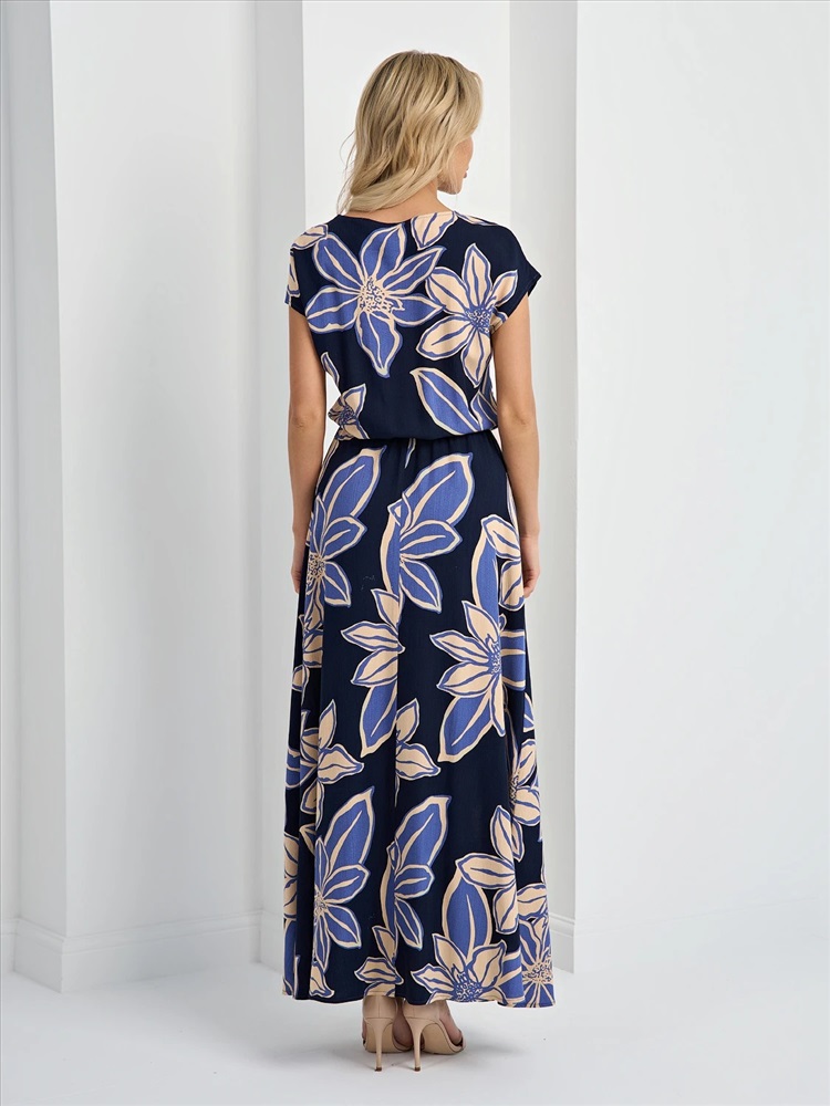 Платье длины макси с вырезом лодочкой.
