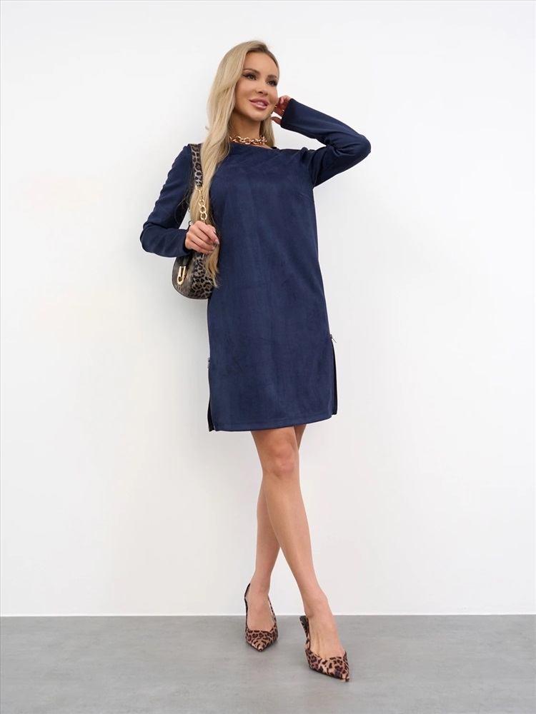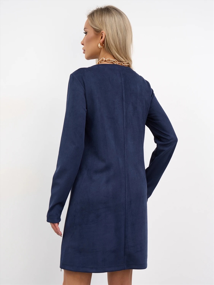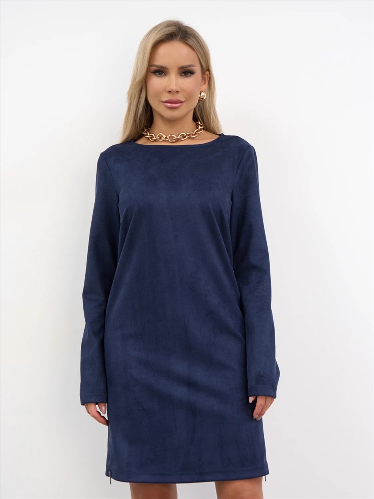 Платье А-силуэта с вырезом горловины лодочкаиз нажнейшего вельвета.