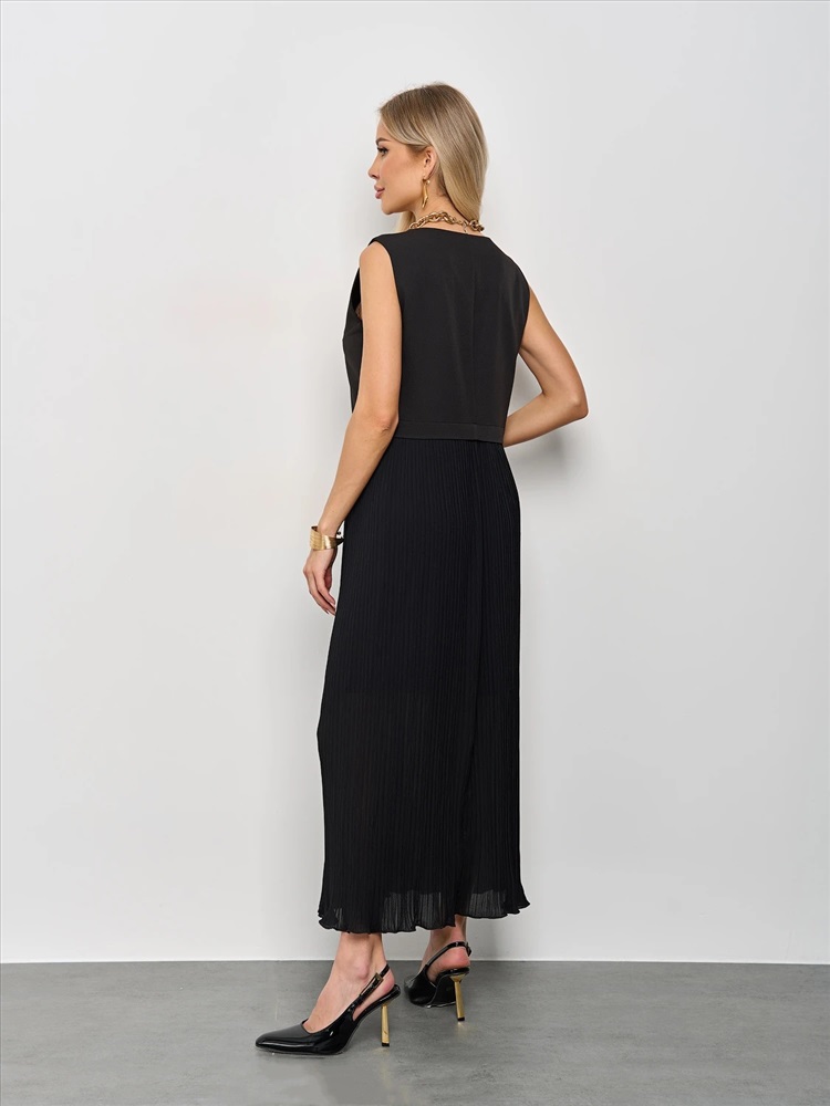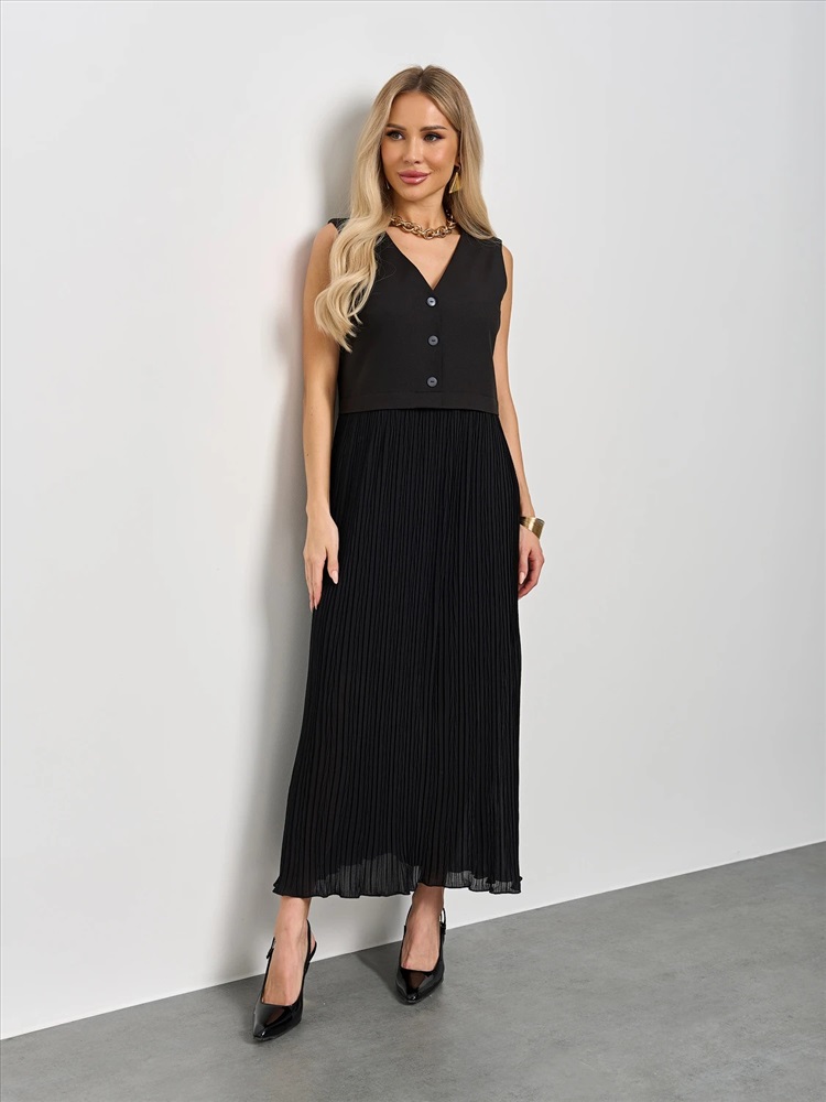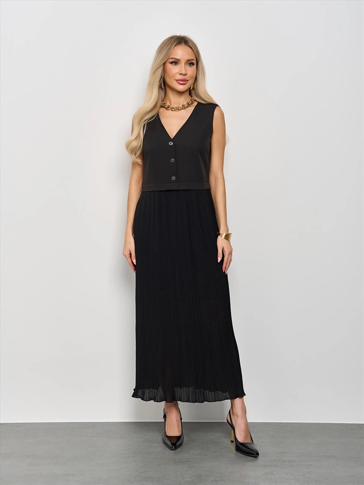 Верх изделия вполнен из костюмной ткани, юбка из жатого шифона с подкладом.