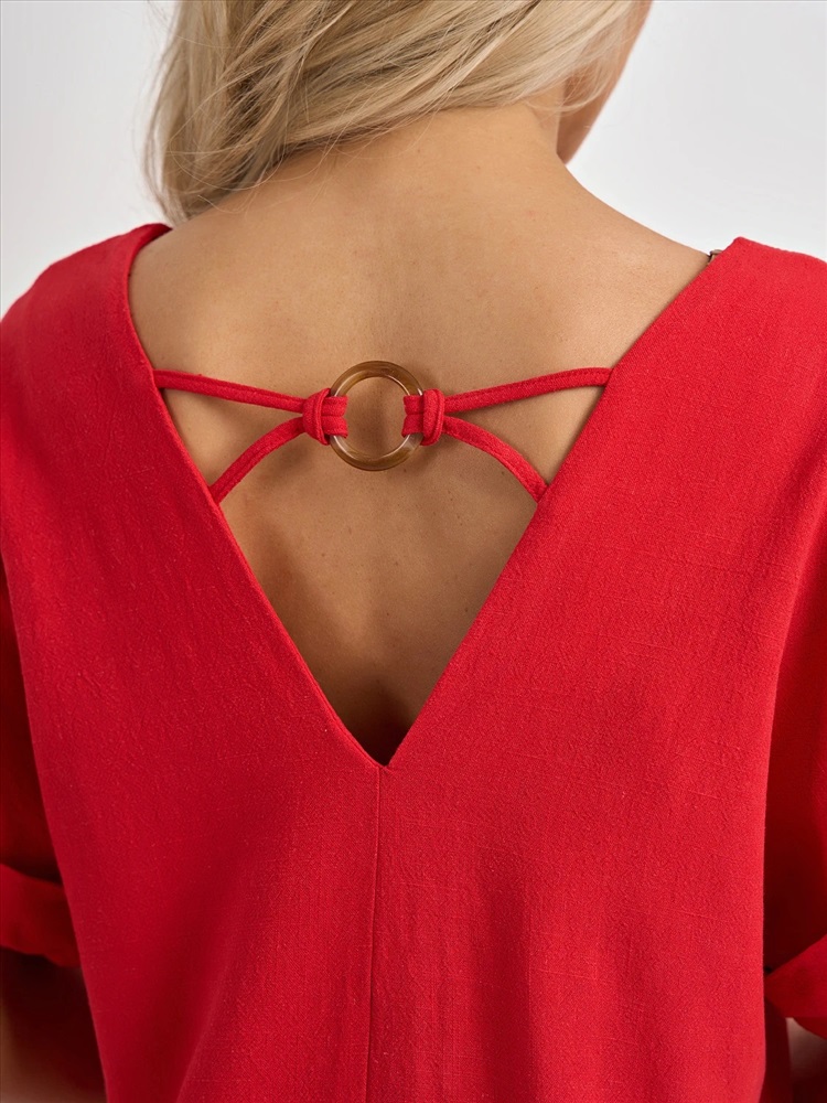 V-образный вырез горловины по переду и спинке. На спинке декоративный элемент - кольцо. Цельнокроеный рукав с отворотом. Ткань усадочная, садится после стрики, степень усадки заложена при крое. На фото изделие после стирки. Комментарии к товару