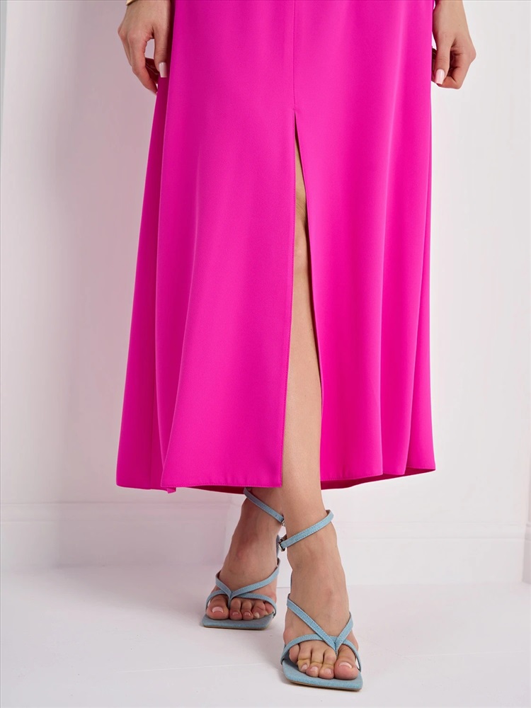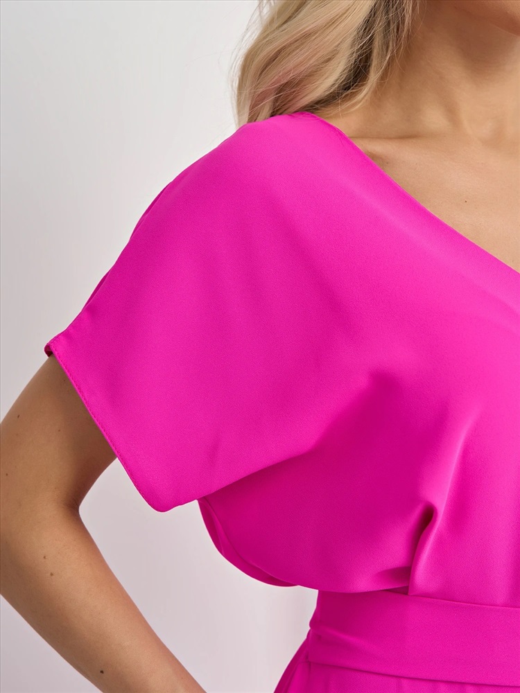 Платье с отрезной талией по переду, в шов вшит широкий пояс, который завязывается сзади.