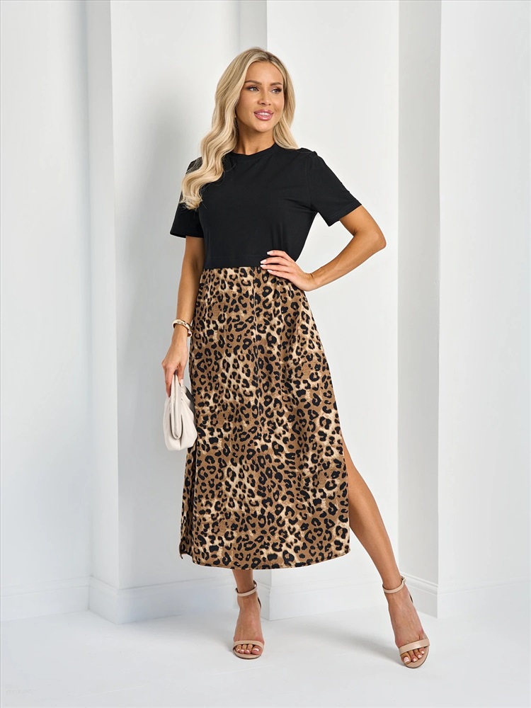 Верх выполнен из трикотажа, юбка из тонкой плательной ткани.
