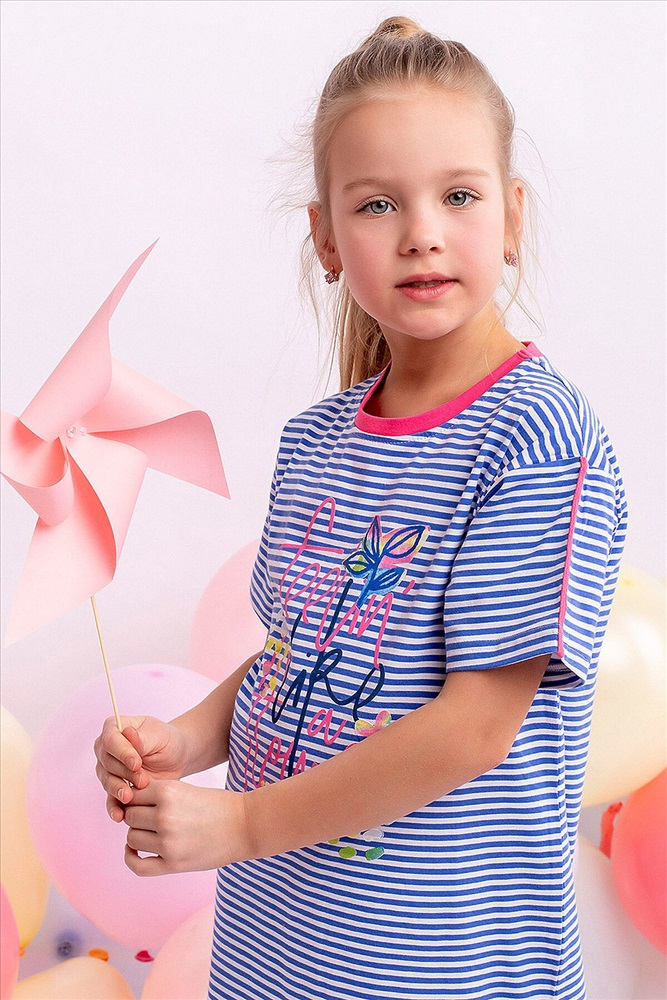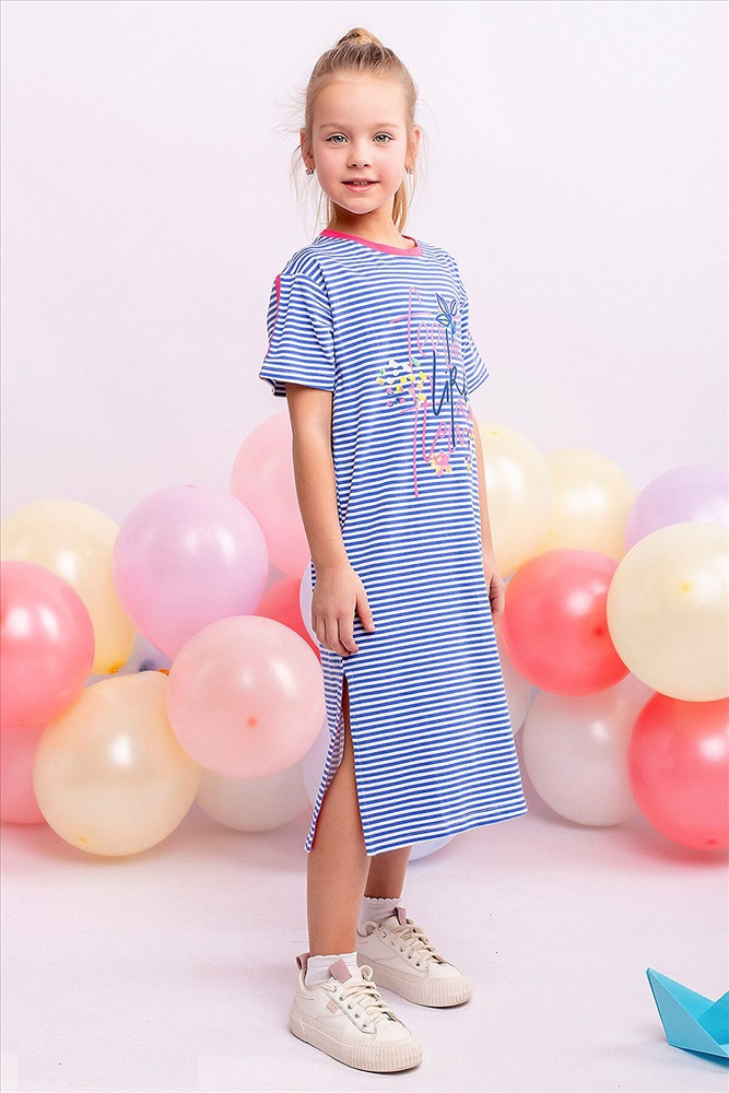 ID товара: 771435 Состав: 92% Хлопок, 8% Эластан Сезон: Весна/Лето Длина: Миди Фасон: Прямое Рукав: Короткие Вырез горловины: Округлый Рисунок: Полоски Декоративные элементы: Разрезы Основная ткань: Хлопок Стиль: Повседневный Страна бренда: Россия Страна производства: Россия Платье для девочки из супрема пенье. Комментарии к товару