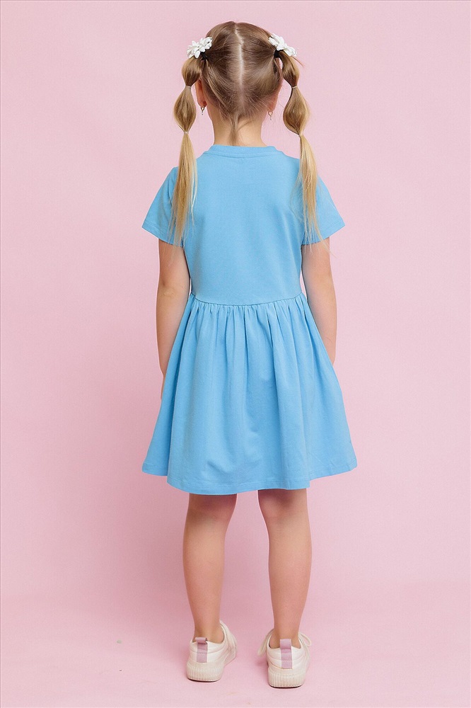 ID товара: 977971 Состав: 92% Хлопок, 8% Эластан Сезон: Весна/Лето Длина: До колена Фасон: Расклешенное Рукав: короткие Вырез горловины: Округлый Рисунок: цветочный Декоративные элементы: Вышивка Основная ткань: Супрем Стиль: повседневный Страна бренда: Россия Страна производства: Россия Платье с коротким рукавом для девочек в голубом цвете с вышивкой и надписями на груди и подоле. Лёгкое летнее платье из набивного трикотажа супрем. Cтильное, яркое и модное платье выполнено из высококачественного хлопка. Комментарии к товару