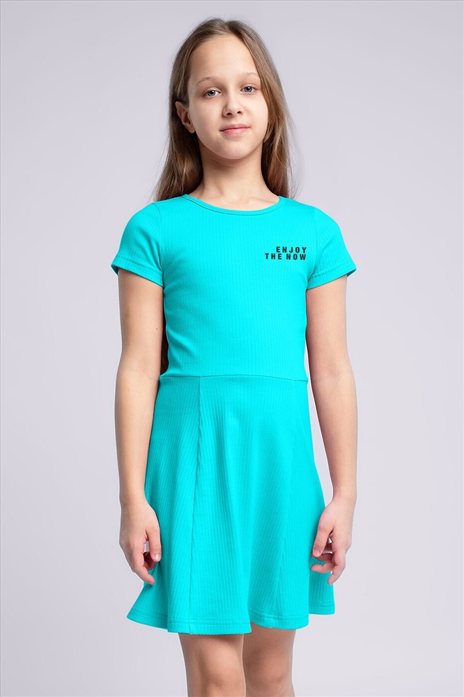 Детское платье из трикотажа приталенного кроя с короткими рукавами. Состав: 95% Хлопок, 5% Эластан