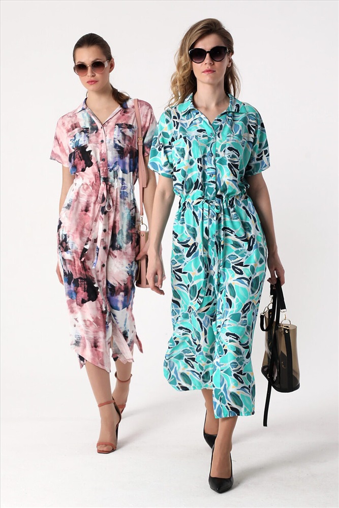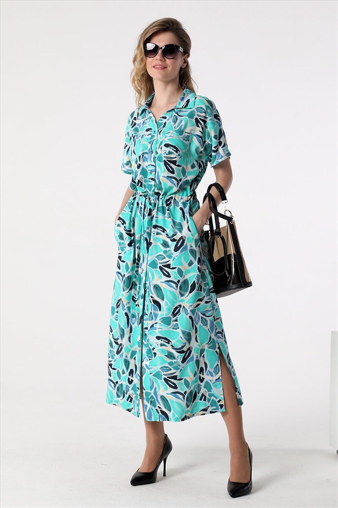 Платье-миди с талией на кулиске. Состав: 100% Вискоза