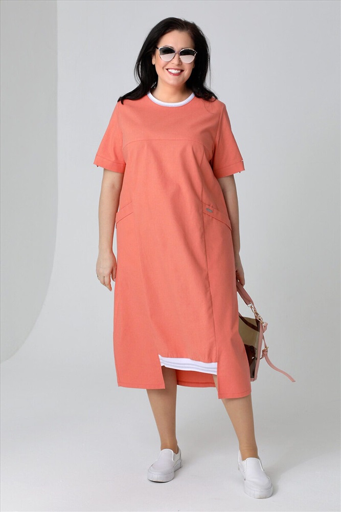 Летнее платье-миди с фигурным низом. Состав: 42% Хлопок, 20% Лен, 20% Полиэстер, 18% Вискоза