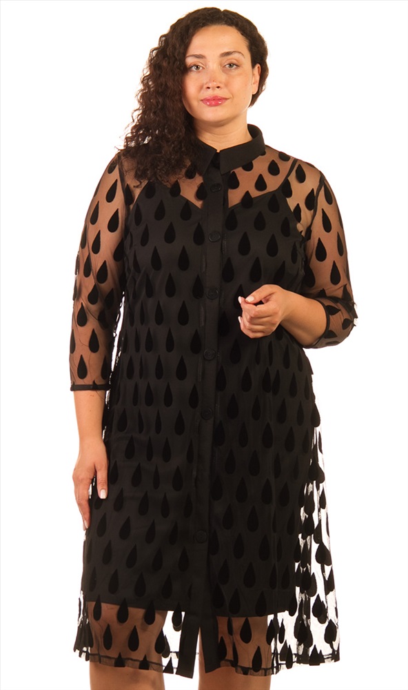 Сезон: Весна-Лето Производитель: Киргизия Фактура материала: Фатин Тип карманов: Без карманов Тип рукава: Длинный Вид горловины: Рубашечный Покрой: Трапеция Рисунок: Крупные капли Вид застёжки: Пуговица Цвет: Черный Размер: 48 Комплект состоит из сарафана на бретельках и фатиновое платье-накидка. Комментарии к товару