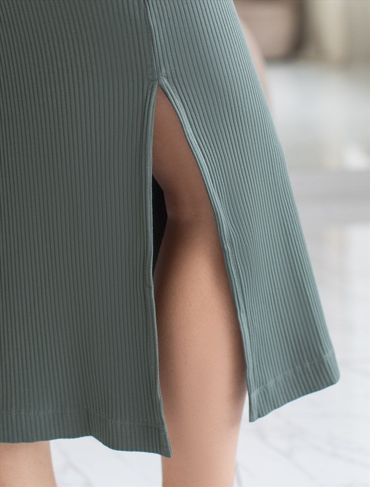 Платье выполнено из трикотажа в широкий рубчик. Модель дополнена высокими разрезами по бокам. Премиальное качество хлопковых волокон и наличие эластана в составе изделия способствуют идеальной посадке по фигуре не сковывая движений. Изделие сохранит свой безупречный внешний вид в течении долгого времени.
