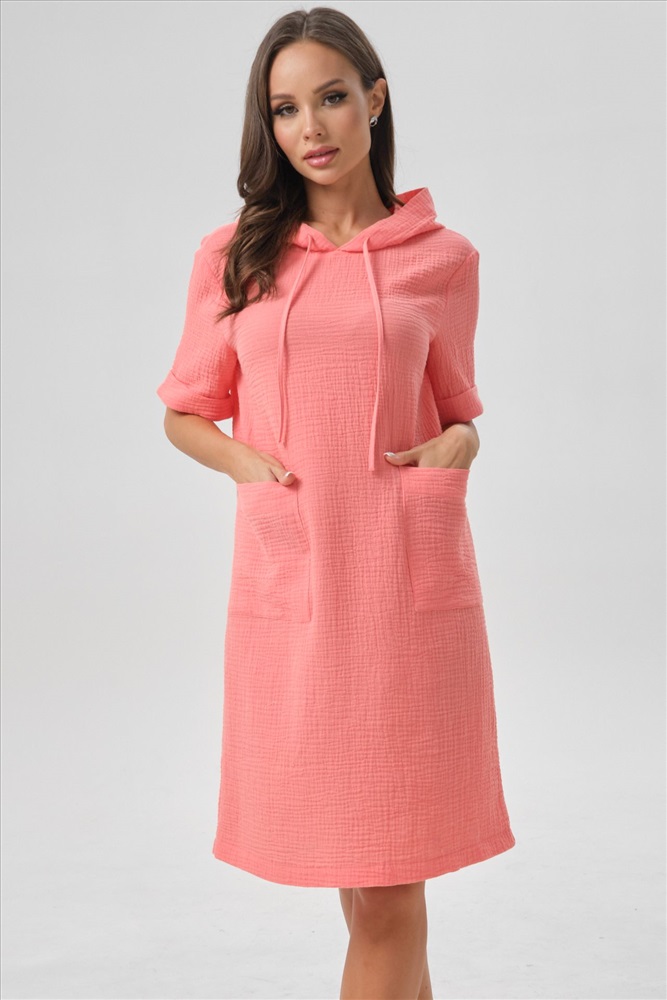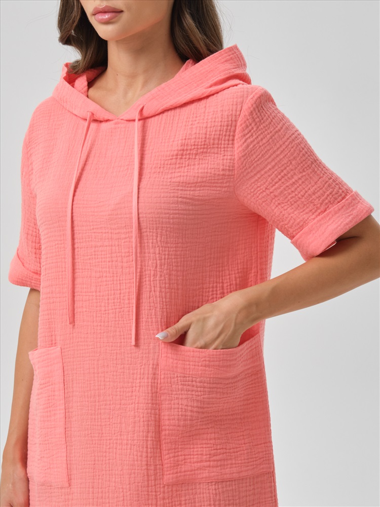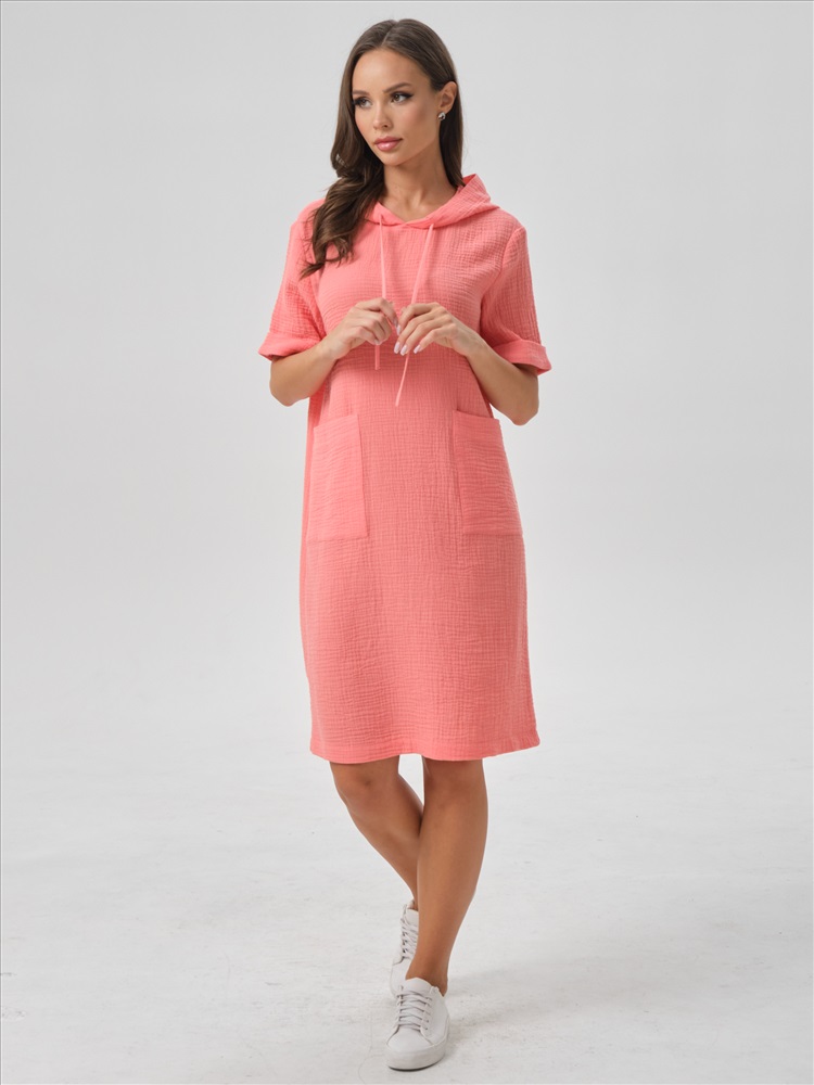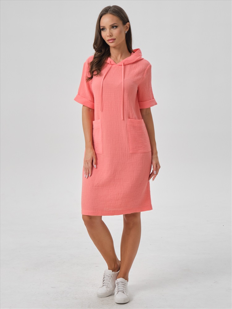 Платье коралловое с капюшоном от бренда Priz. Модель прямого силуэта, выполнена из хлопкового муслина. Короткие втачные рукава, по низу отложная манжета. Спереди накладные карманы. В кулису по краю капюшона вставлен шнурок. Идеальный выбор для женственного образа., Оттенок цвета может незначительно отличаться от фото., Ожидание отправки (рабочих дней): 7, Длина: в росте 164: 42 р-ре - 102,5 см, 54 р-ре - 105,5 см., Размер модели: 44., Рост модели: 174 см., Состав:, Хлопок 100%, Тип ткани:, Муслин