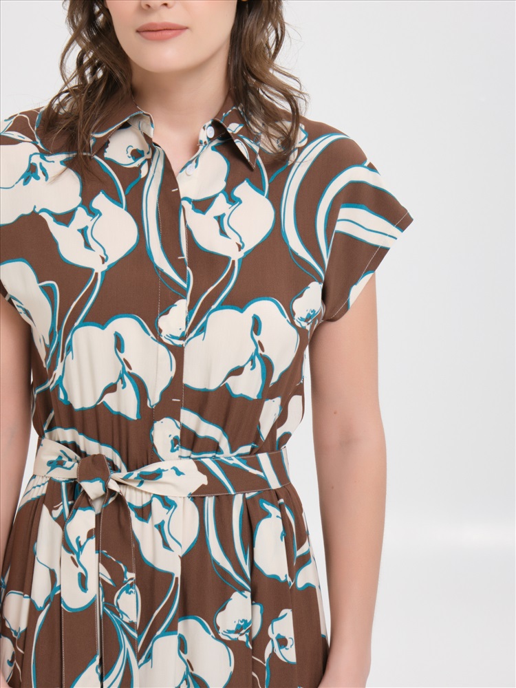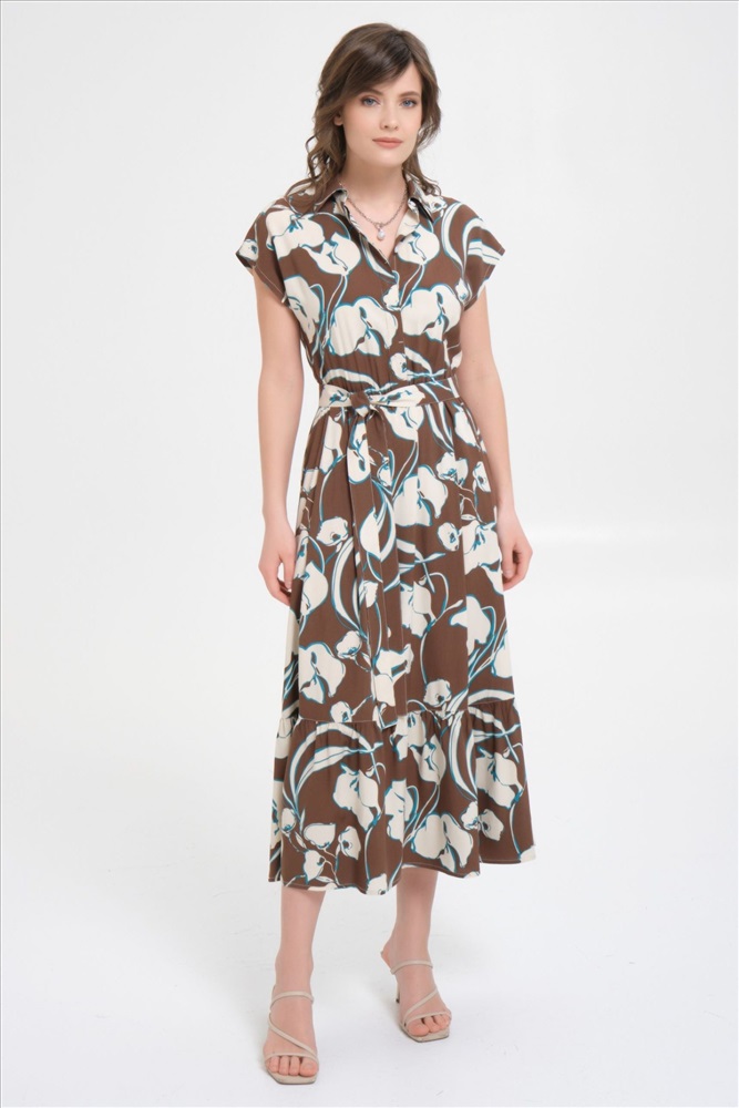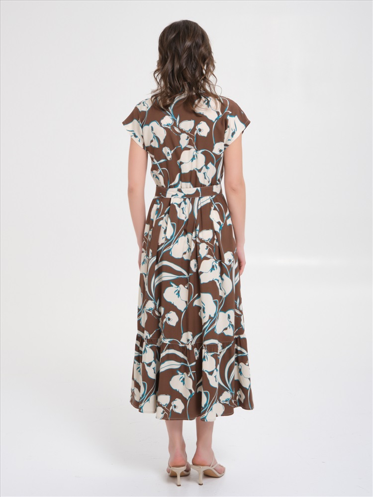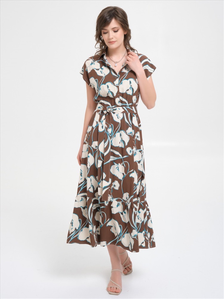 Платье коричневое с поясом от бренда Priz. Модель прямого силуэта, выполнена из вискозы с принтом, с отрезной линией талии, собранной на резину. Спереди потайная застёжка на петли и пуговицы. Нижняя часть платья с защипами по талии и присборенным воланом по низу. Рукав цельнокроеный короткий. Идеальный выбор для женственного образа., Оттенок цвета и расположение рисунка могут незначительно отличаться от фото., Ожидание отправки (рабочих дней): 7, Длина: в росте 164: 42 р-ре - 131,5 см, 52 р-ре - 134 см., Размер модели: 44., Рост модели: 174 см., Состав:, Вискоза 100%, Тип ткани:, Текстиль