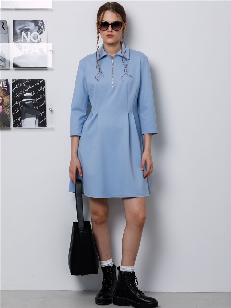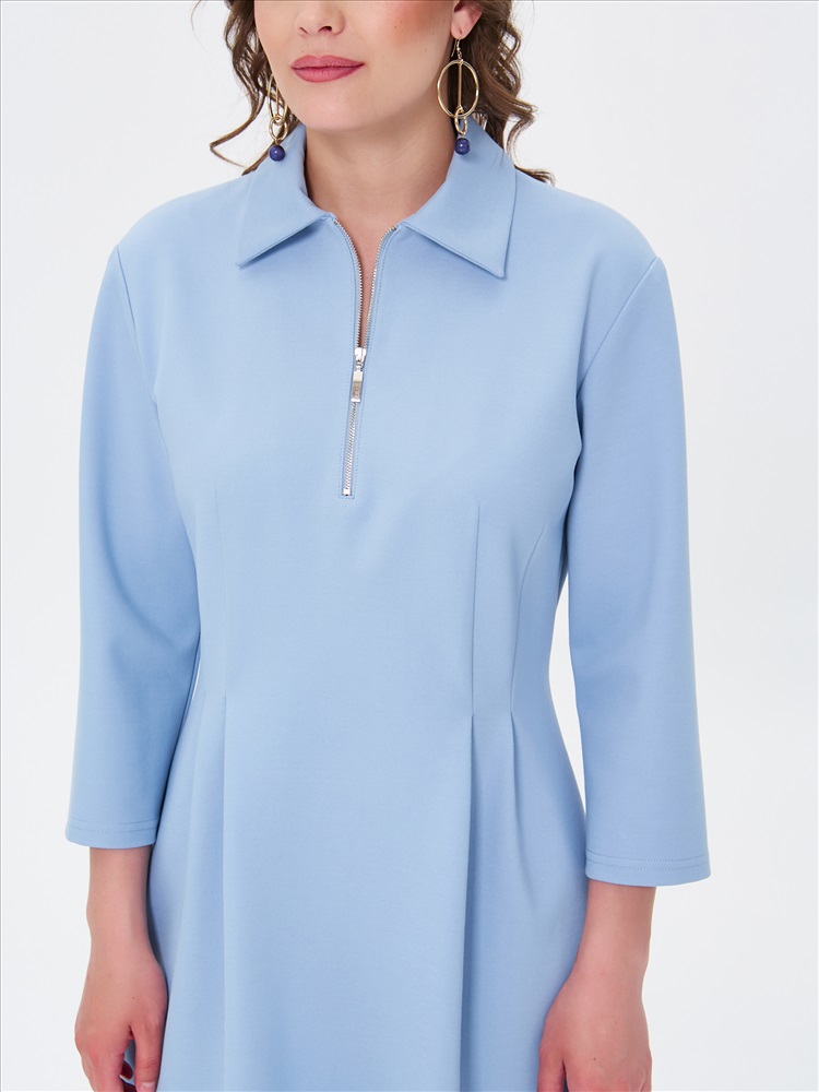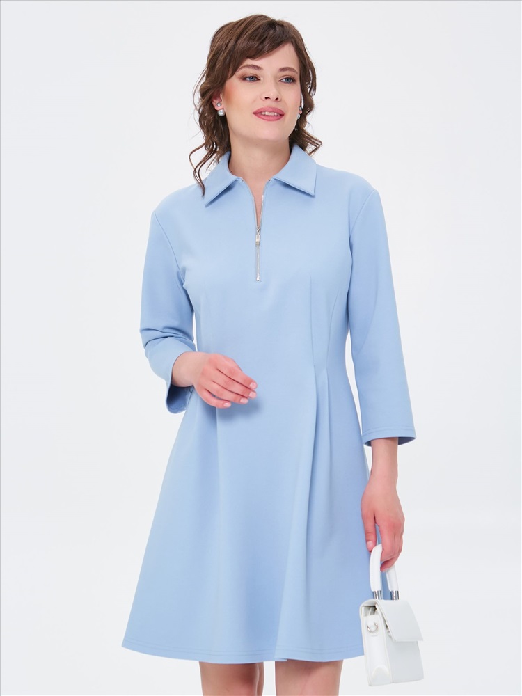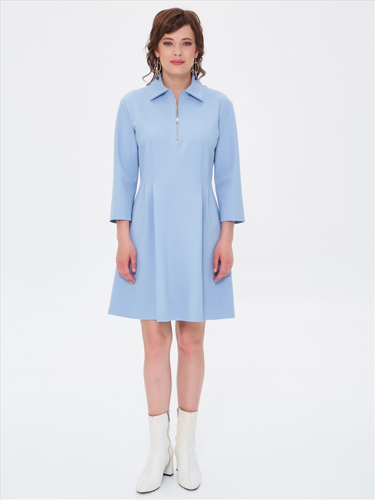 Платье короткое трикотажное в цвете пастельный синий от бренда Priz. Платье Х-силуэта, со спущенным плечом и рукавом длиной 3/4. Воротник отложной. Спереди застёжка на металлическую молнию. Вытачки по талии переходят в мягкие складки. Идеальный выбор для женственного образа., Оттенок цвета может незначительно отличаться от фото., Ожидание отправки (рабочих дней): 7, Размер модели: 44., Рост модели: 174 см., Состав:, Вискоза 63%, Полиамид 32%, Эластан 5%, Тип ткани:, Трикотаж