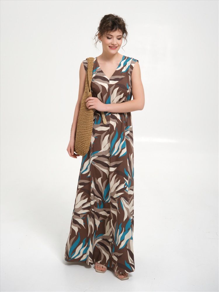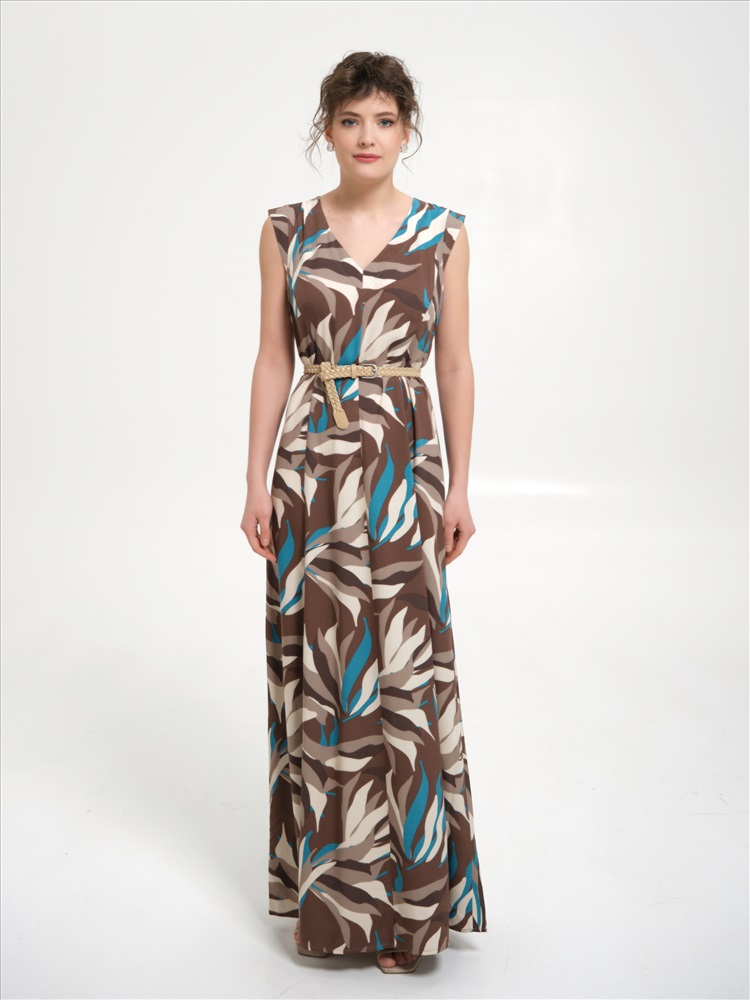 Платье макси с ремешком от бренда Priz, выполнено из текстильного полотна цвета чёрный кофе с принтом. Модель полуприлегающего силуэта, расширенная к низу, с рельефами. В среднем шве спинки потайная застёжка молния. Пройма в верхней части с небольшим «крылышком». Стильный вариант для создания модного образа., Оттенок цвета и расположение рисунка могут незначительно отличаться от фото., Ожидание отправки (рабочих дней): 7, Длина: в 42 р-ре – 147 см, в 52 р-ре – 148,5 см., Размер модели: 44., Рост модели: 174 см., Состав:, Вискоза 100%, Тип ткани:, Вискоза