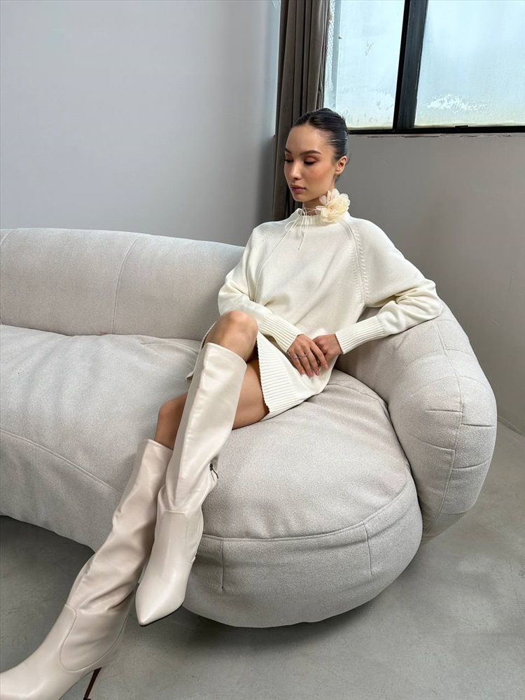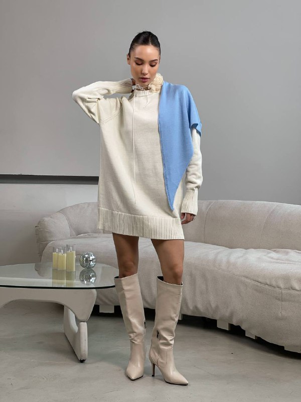 Рукава реглан, манжеты по низу и рукавам. Дополнить образ можно высокими ботфортами или грубыми сапогами. Размер изделия: Onesize, S-L (40-46) Обмеры: Ширина по груди: 55 см. Длина рукава реглан: 75 см. Длина изделия: 82 см. Обмеры сделаны не в натянутом положении, трикотажные изделия могут иметь погрешность 1-2 см. Ручная стирка: при температуре не более 30 градусов. Замачивать 5 минут, не тереть, прополоскать до исчезновения пены. Машинная стирка: при температуре 30 градусов. Не использовать средства, содержащие отбеливатель. Без отжима. Для удаления лишней влаги аккуратно сжать руками. Сушить: разложив на плоскую поверхность, подальше от батареи и прямых солнечных лучей. Не вешать. Гладить: через тонкую смоченную тряпку в режиме отпаривания. Комментарии к товару