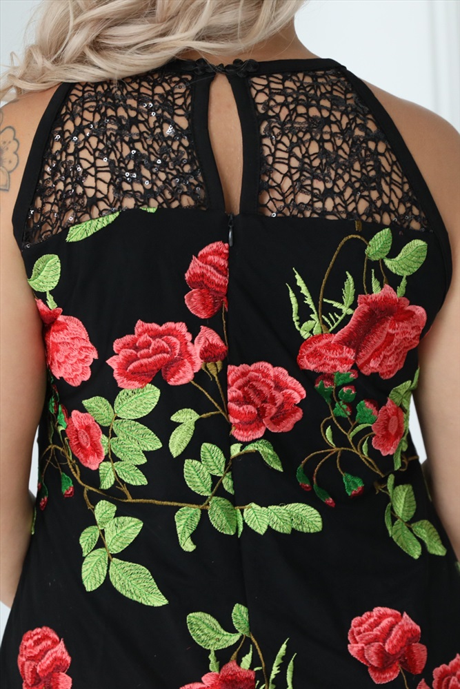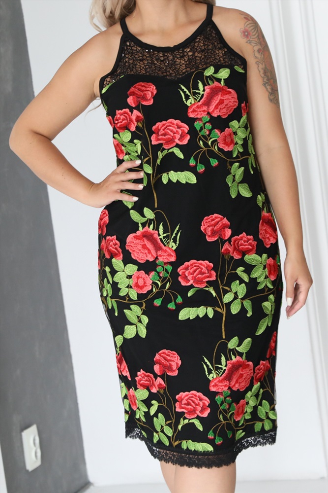 ШтрихКод: 4650333156781 По размеру: 42, 44 Состав: Полиэстер 95% Эластан 5% Скидка на сайте: 20% Срок готовности: 2017-11-20T00-00-00 Изящное платье прилегающего силуэта черно-красного цвета. Круглый вырез и проймы изделия обработаны окантовкой. Кокетка платья выполнена из кружевного полотна расшитого пайетками. Платье двойное: верхняя часть выполнена из легкой сетки расшитой розами. Снизу однотонный подклад из трикотажного полотна черного цвета. Спинка изделия дополнена застежкой на потайную молнию и маленькую сутажную застежку. По низу платья разрез. Аксессуары в комплект не входят. Длина изделия по спинке от плечевого шва до низа изделия - 108 см. Комментарии к товару