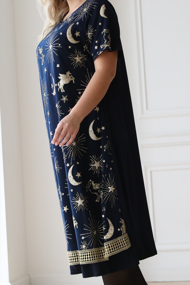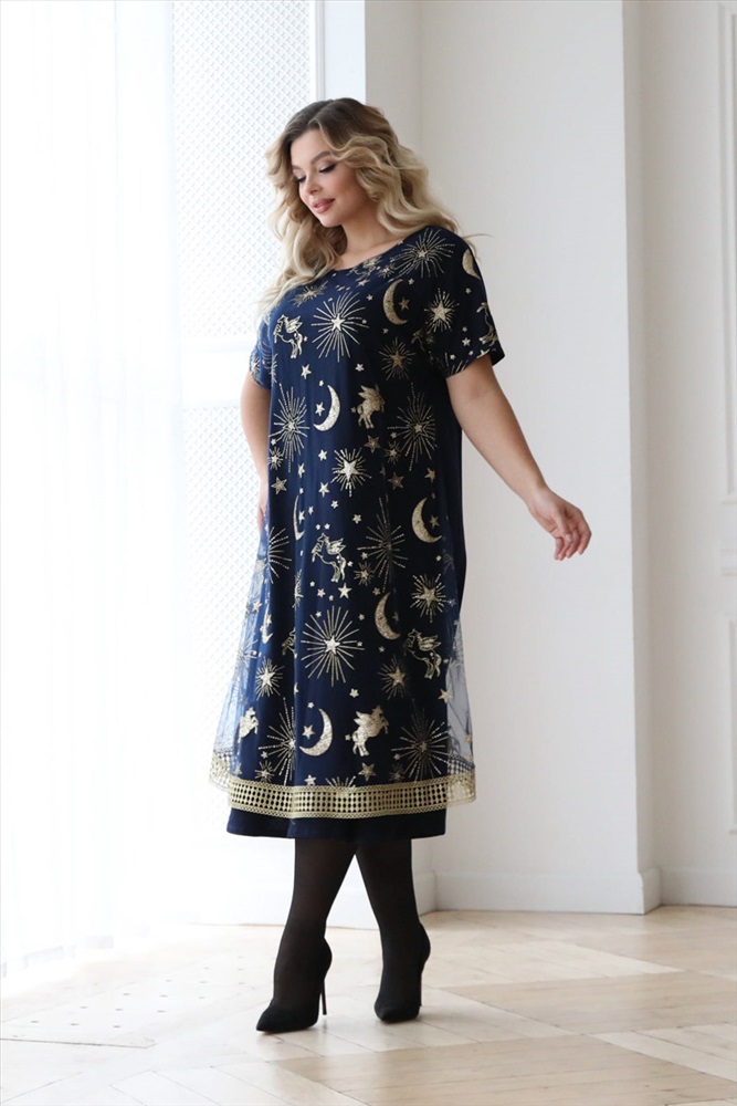 По размеру: 50 Состав: Полиэстер 95% Эластан 5% ШтрихКод: 4630328709642 Скидка на сайте: 20% Срок готовности: 2019-11-07T00-00-00 Романтичное платье полуприлегающего силуэта из трикотажного полотна темно-синего цвета. По переду верхний слой платья дополнен полупрозрачной сеткой с золотым рисунком. Круглый вырез горловины обработан окантовкой. Платье с цельнокроенными рукавами. Аксессуары в комплект не входят. Длина изделия от плечевого шва по спинке до низа изделия - 121 см. Рост фотомодели - 175 см. Комментарии к товару