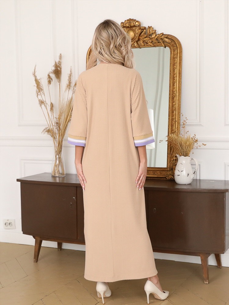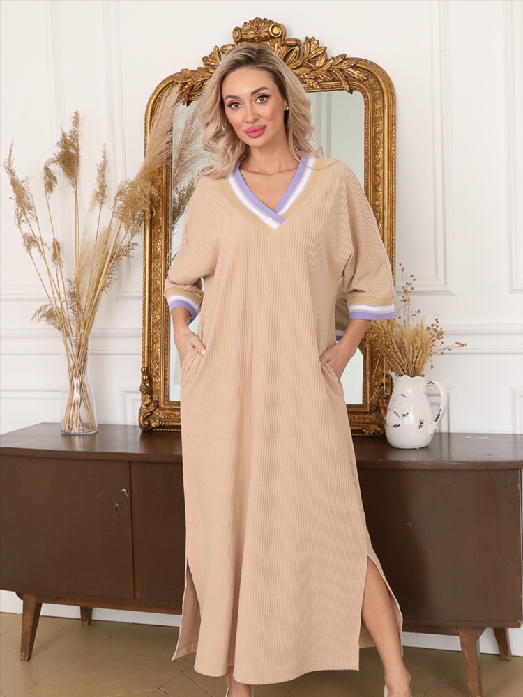 По размеру: 54 Состав: Вискоза 95% Эластан 5% ШтрихКод: 4650333121246 Срок готовности: 2024-01-29T00-00-00 Эффектное платье свободного силуэта из трикотажного полотна бежевого цвета. Платье со спущенной проймой и втачными рукавами. V-образный вырез и рукава обработаны трикотажными подвязами. По бокам издедия - внутренние карманы. По бокам платье дополнено разрезами. Длина изделия по спинке от плечевого шва до низа изделия — 125 см. Рост фотомодели — 170 см. Комментарии к товару