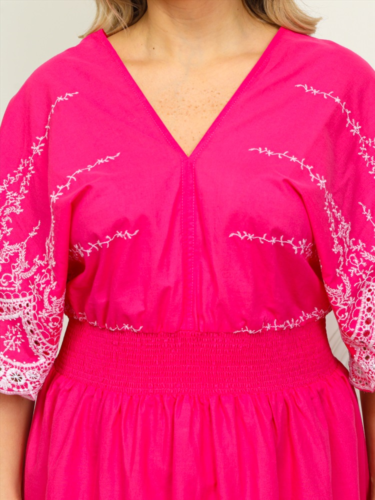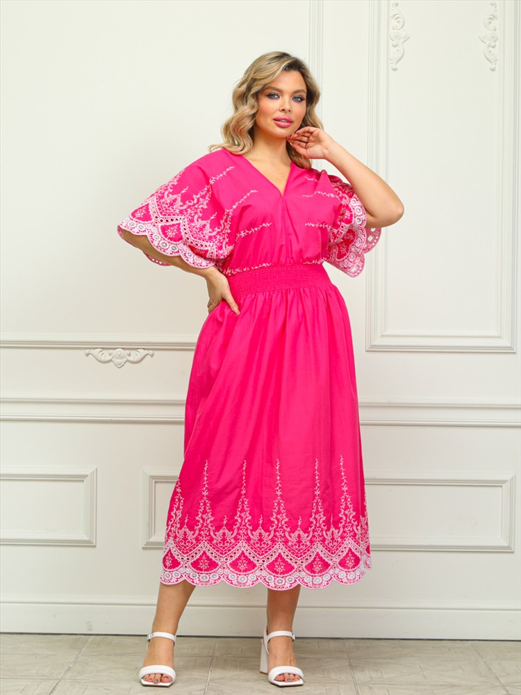 ШтрихКод: 4630328736457 По размеру: 52, 54, 56 Состав: Хлопок 100% Срок готовности: 2024-04-29T00-00-00 Восхитительное платье полуприлегающего силуэта из текстильной ткани розового цвета с контрастной вышивкой. V-образный вырез обработан окантовкой. Платье с цельнокроеными рукавами. Линия талии завышена, эффектно подчеркнута декоративным швом с резинкой. Длина изделия по спинке от плечевого шва до низа изделия - 130 см. Рост фотомодели - 170 см. Комментарии к товару