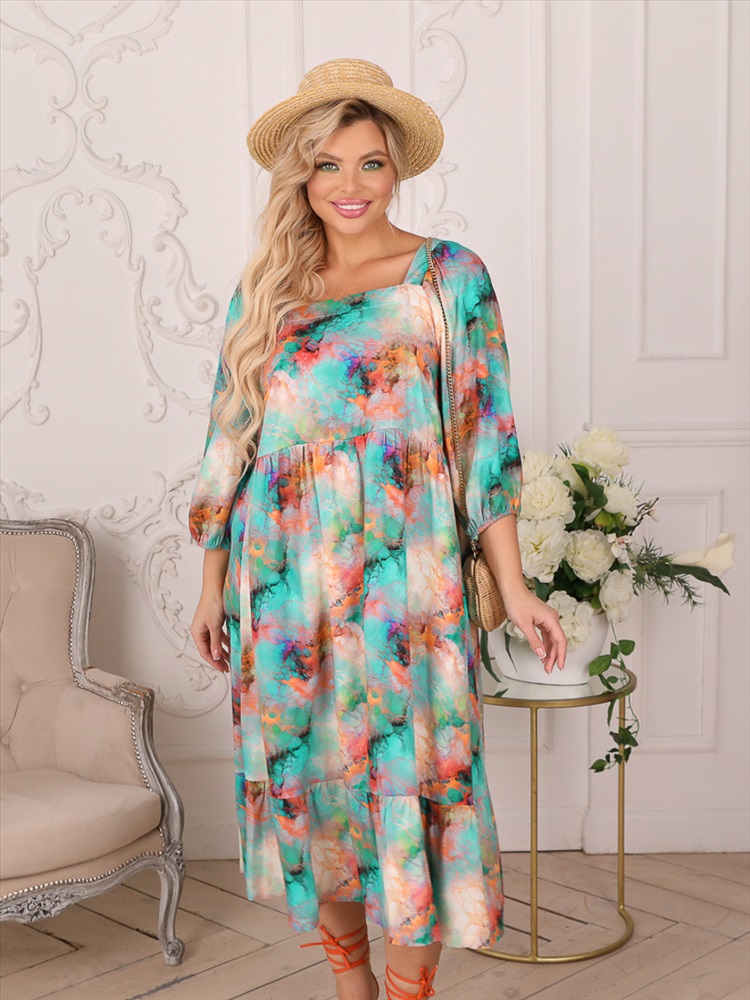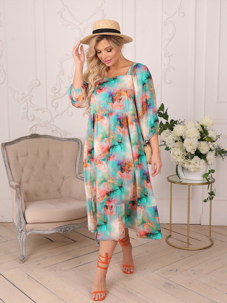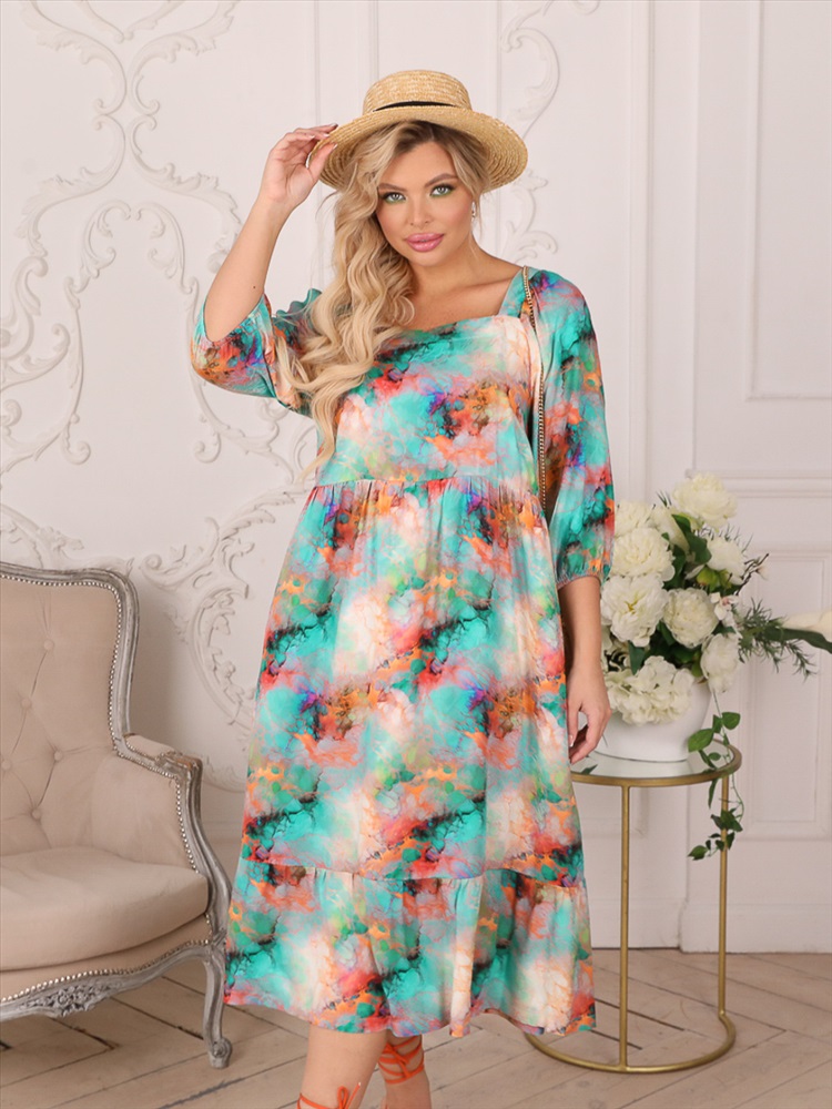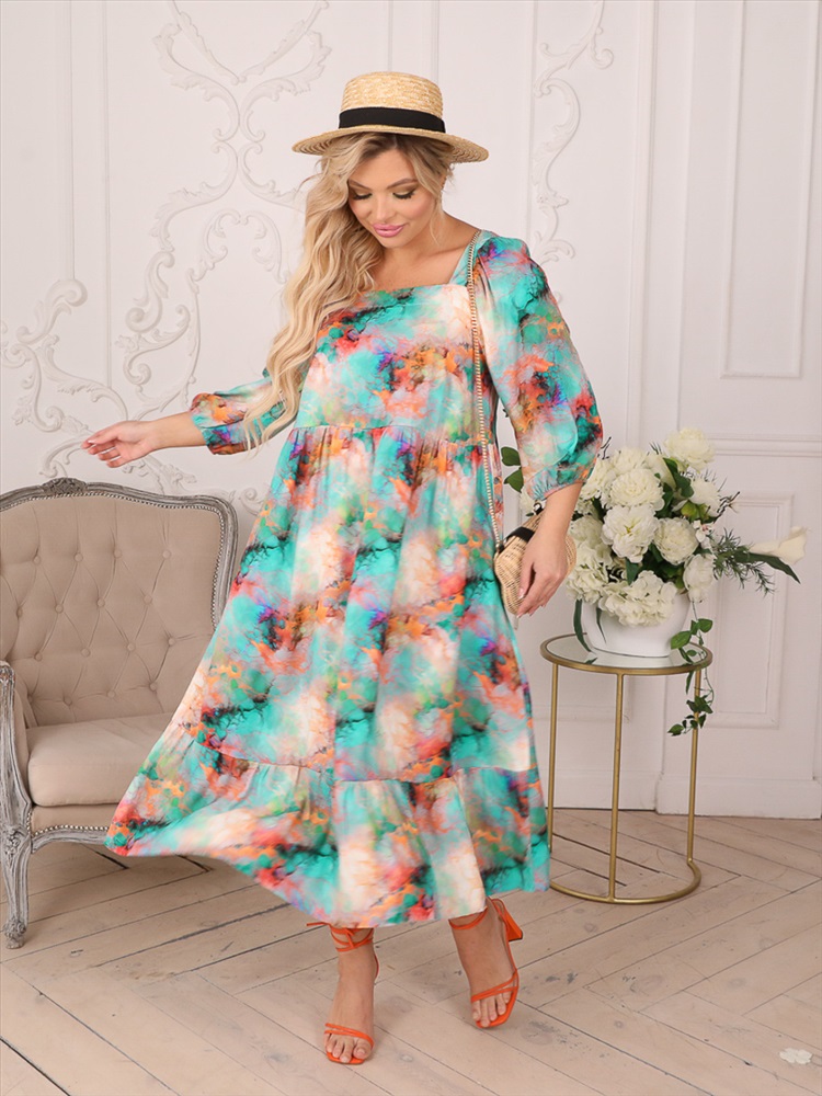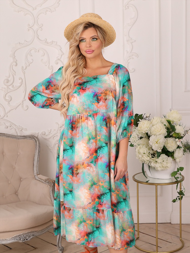 Очаровательное платье полуприлегающего силуэта из текстильной ткани бирюзового цвета. Квадратный вырез изделия обработан внутренней обтачкой. Втачные рукава обработаны резинокй. Линия груди эффектно подчеркнута сборкой. Длина изделия по спинке от плечевого шва до низа изделия - см. Рост фотомодели - 170 см.