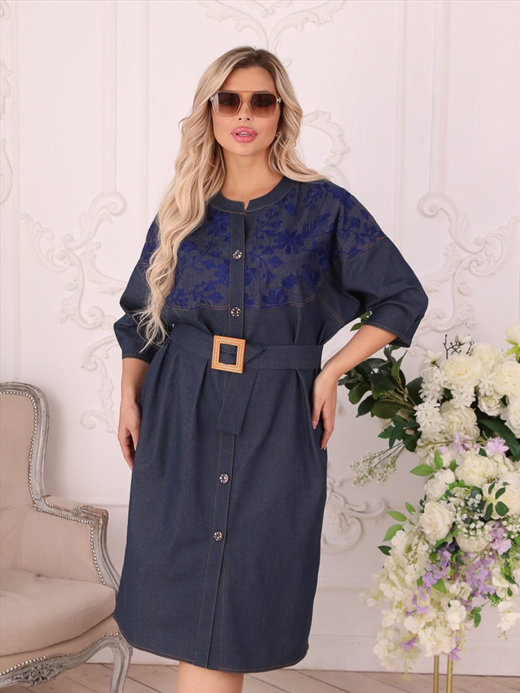ШтрихКод: 4630328760919 По размеру: 52, 54 Состав: Хлопок 97% Эластан 3% Срок готовности: 2024-07-01T00-00-00 Стильное платье полуприлегающего силуэта из текстильной ткани джинсового цвета. Круглый вырез изделия обработан внешней обтачкой. Верхняя часть переда выполнена из декоративной ткани с вышивкой. Платье со спущенной проймой, втачные рукава обработаны манжетами. По переду изделия выполнена планка с застежкой на пуговицы. Длина изделия по спинке от плечевого шва до низа изделия - см. Рост фотомодели - 170 см. Комментарии к товару